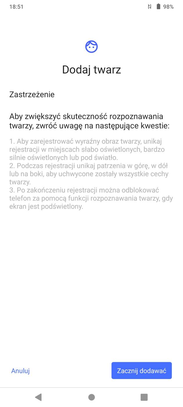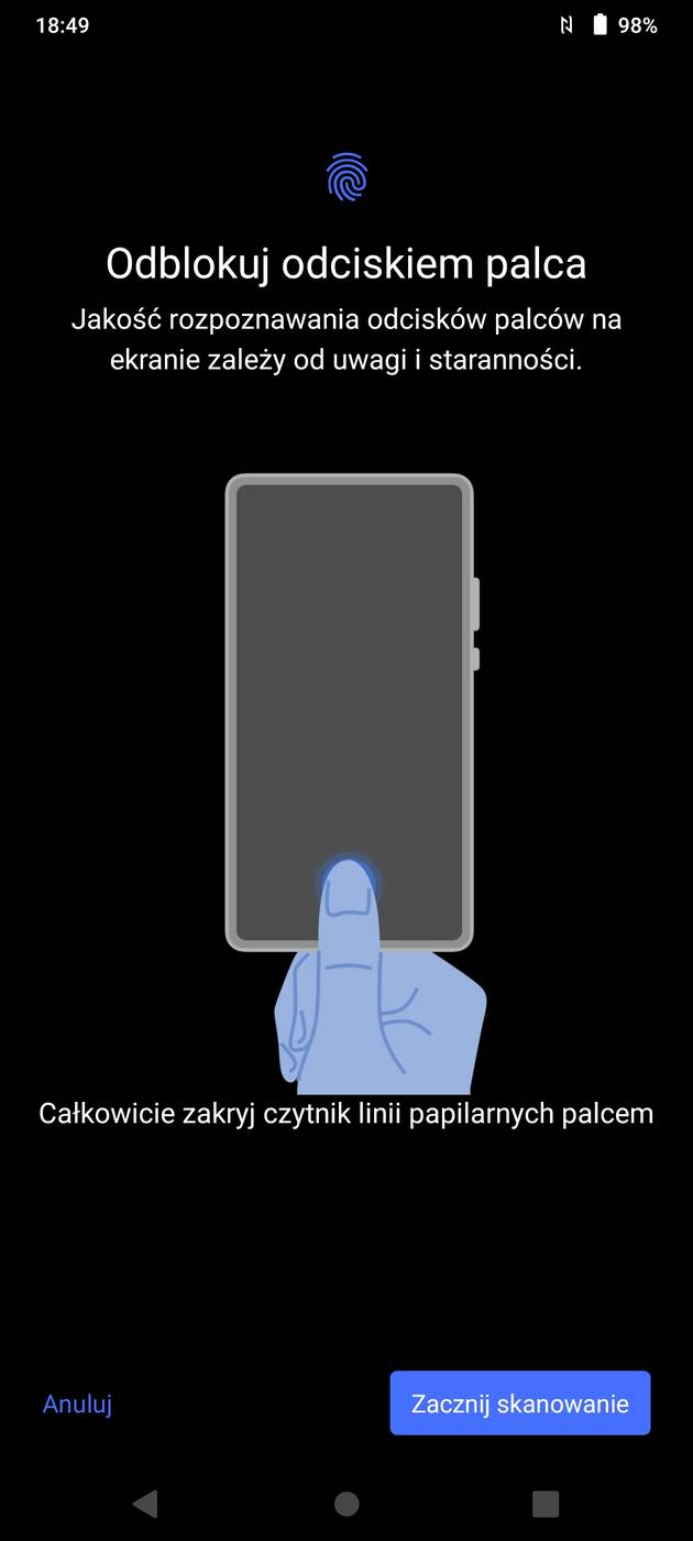 Czytnik linii papilarnych jest wbudowanym w ekran czytnikiem ultradźwiękowym. Jest on cały czas aktywny, celny, ale oczywiście nie aż tak szybki jak w topowych konstrukcjach. Niemniej jego użytkowanie na co dzień nie nastręcza problemów. Podobnie sprawa wygląda z odblokowywaniem ekranu za pomocą skanu twarzy, choć tu jest mała ciekawostka. Ekran odblokujemy również w maseczce, a także jeśli w kadrze znajduje się inna osoba. Niby spoko, bo usprawnia działanie na co dzień, ale… budzi jednak obawy o bezpieczeństwo.