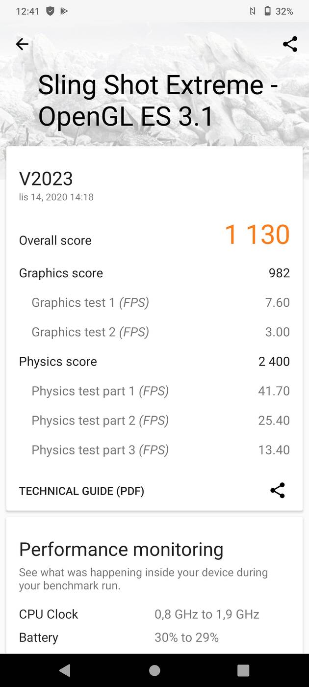 - 3D Mark (test Sling Shot Extreme) – 1130 pkt (OpenGL ES 3.1)