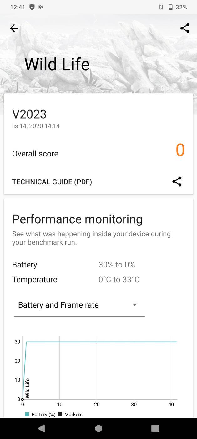 - 3D Mark Wild Life – 0 pkt (telefon nie spełniał wymogów testu)