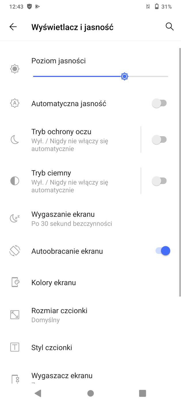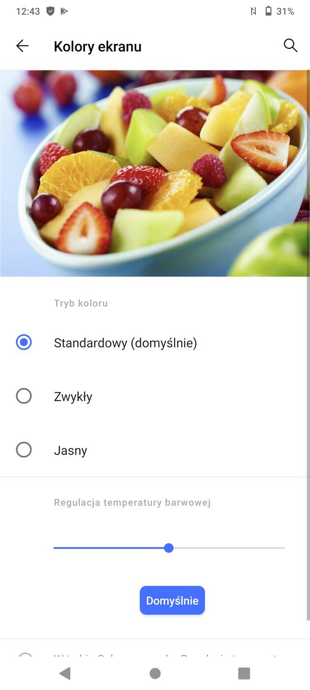 W ustawieniach znajdziemy oczywiście filtr światła niebieskiego, możliwość regulacji temperatury barwowej oraz tryb ciemny dla menu.