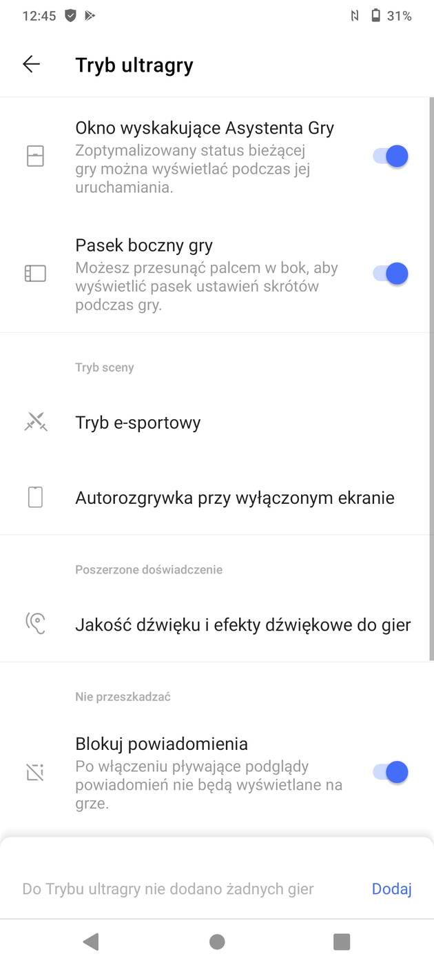 W ustawieniach znajdziemy tryb dedykowany graczom, zawierający m.in. opcję obrazu w obrazie, Asystenta Gry oraz opcję dla e-sportowców.