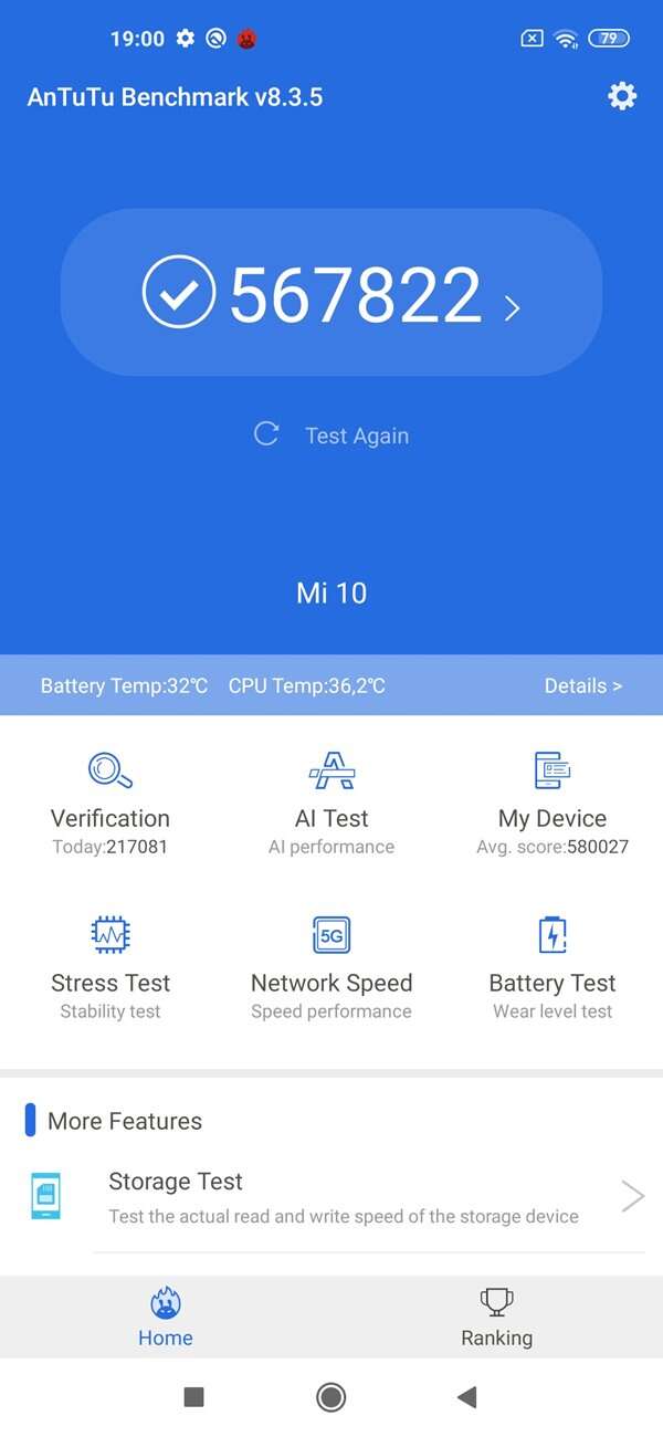 - Antutu Benchmark 8.3.5 – 567 822 pkt