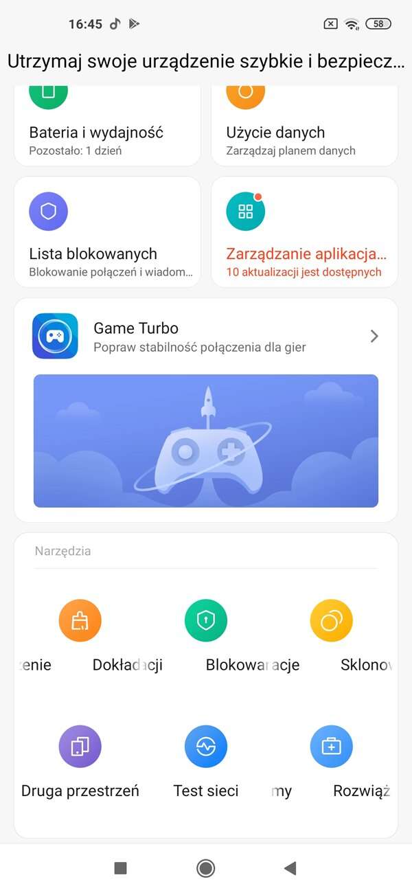 Na pokładzie znajdziemy dyktafon, funkcję nagrywania ekranu (z możliwością regulacji rozdzielczości, liczby klatek na sekunde i bitrate!) oraz aplikację do optymalizowania urządzenia, nazwaną nieco myląco Panelem sterowania. Są również proste, autorskie aplikacje do odtwarzania multimediów, skaner kodów QR i aplikacja Pilot Mi (do obsługi innych urządzeń za pomocą podczerwieni).
