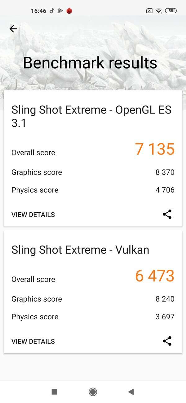 - 3D Mark (test Sling Shot Extreme) – 7135 pkt (OpenGL ES 3.1), 6473 pkt (Vulkan)