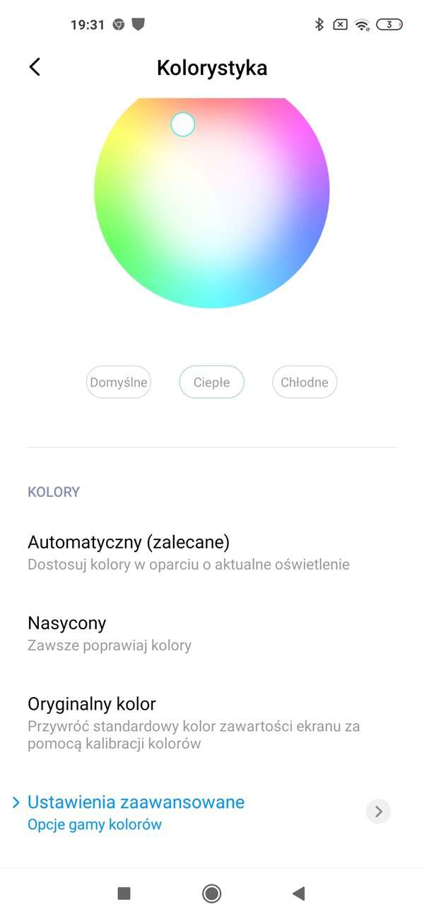 - Automatyczny (smartfon sam dostosowuje kolory w oparciu o aktualne oświetlenie)