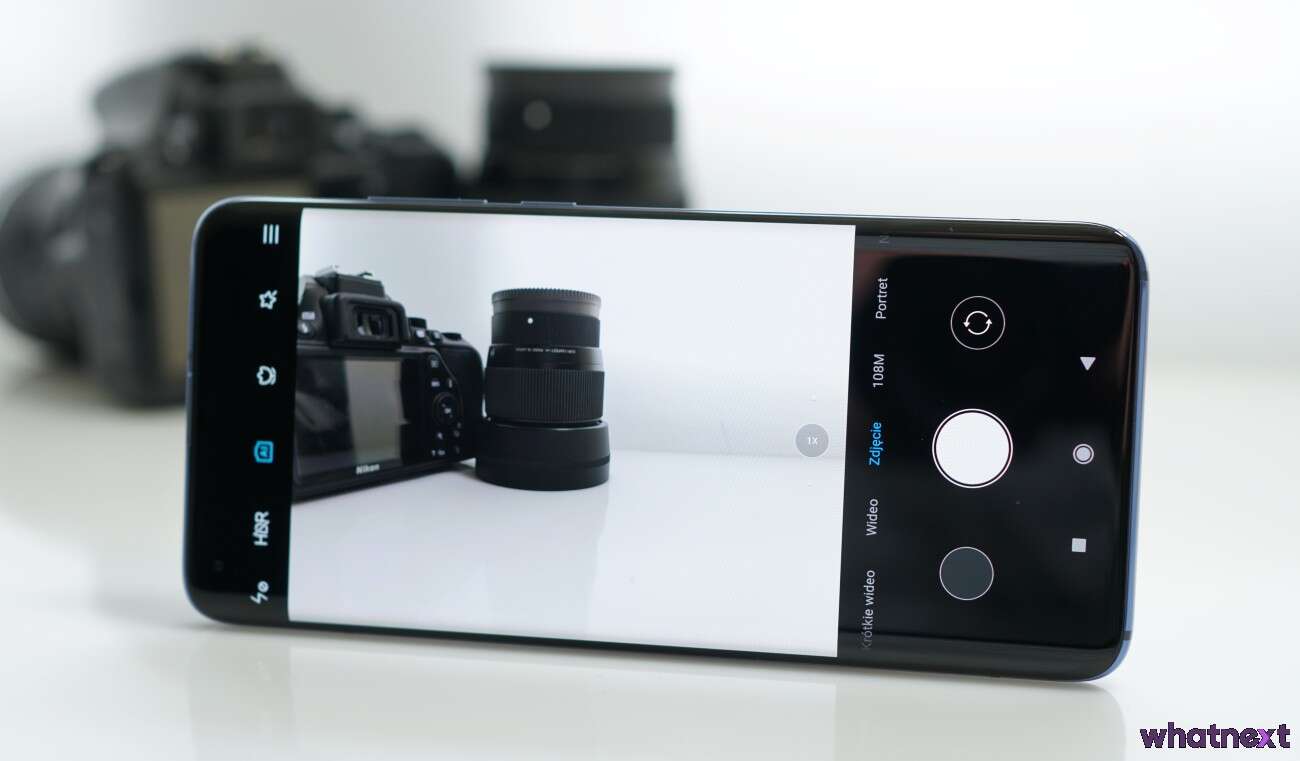 Obiektywy oczywiście wyraźnie wystają z bryły urządzenia, ale są wyposażone w optyczną stabilizację obrazu, a do pomocy mają podwójną diodę doświetlającą. Aplikacja do obsługi aparatu jest przejrzysta i funkcjonalna. Mamy w niej oczywiście wsparcie AI, dedykowany tryb nocny, oraz tryb profesjonalny, z możliwością ustawienia czasu ekspozycja aż do 30 sekund. Możemy również cyknąć zdjęcie w pełnej rozdzielczości matrycy głównej, czyli aż 108 Mpix!