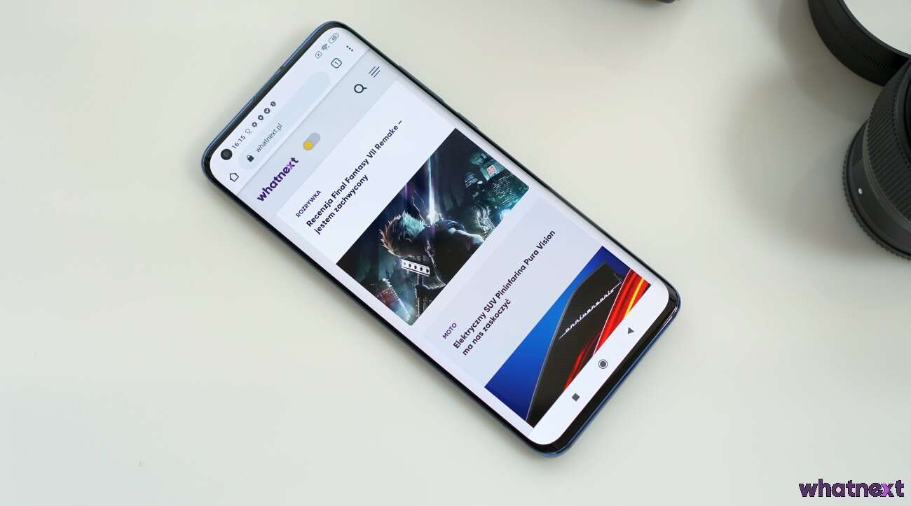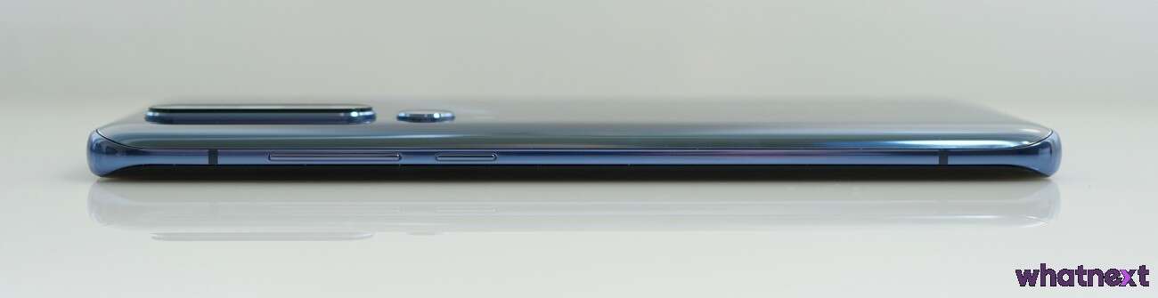 Telefon został wyposażony w 6,67 calowy wyświetlacz wykonany w technologii AMOLED o proporcjach 19,5/9 i rozdzielczości 2340 x 1080. Co ważne, jest to panel wyposażony w 90 Hz odświeżanie oraz wsparcie dla HDR 10+. W jego lewym górnym rogu widnieje okrągłe wcięcie na przednią kamerę. Zagięcia na krawędziach potęguje wrażenie bardzo cienkich ramek wyświetlacza.