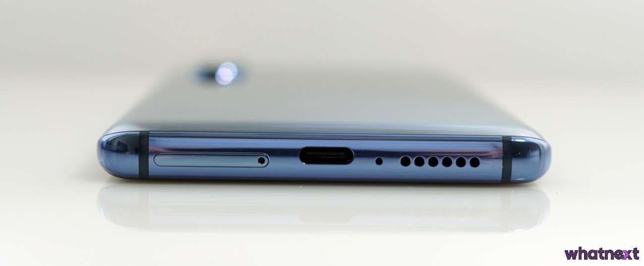 Całość scala metalowa ramka. Na jej krawędziach znajdziemy złącze USB C, głośniki stereo, port podczerwieni, przyciski głośności i on/off oraz tacka na kartę nano SIM.