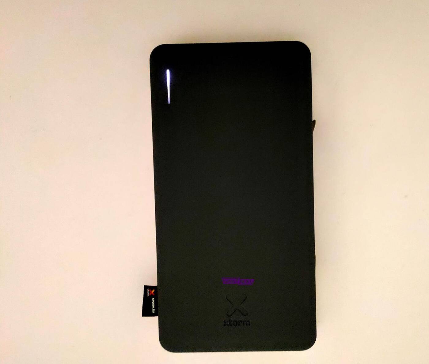 Powerbank jest cały szary z białą ramką. Musicie mi uwierzyć na słowo – na zdjęciach, wygląda on bowiem bardziej na czarny. Jest to neutralny design charakterystyczny dla Xtorma. Jego dokładne wymiary to 179 x 92 x 23 mm a wazy on 520 g.