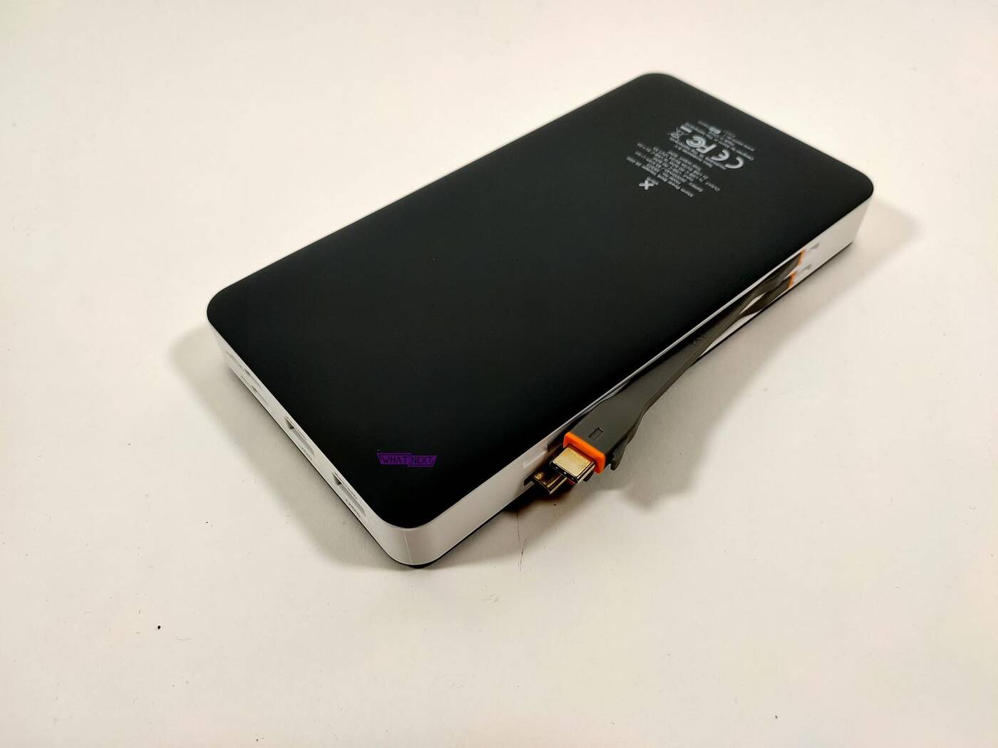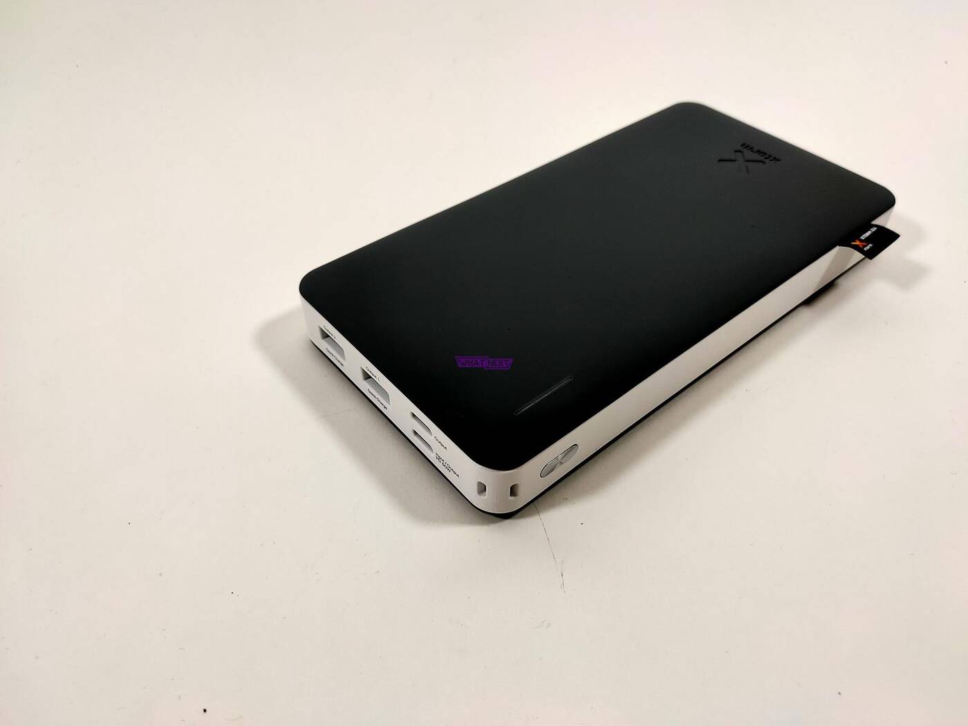 Bardzo fajną częścią Xtorm 60W Power Bank Voyager 26000 jest wskaźnik naładowania baterii – wygląda on świetnie. Powerbank ma z jednej strony włącznik a z drugiej dwa kable USB-C -> USB-C. Dzięki temu można bezproblemowo ładować naraz dwa urządzenia a kable zawsze będziecie mieli przy sobie.