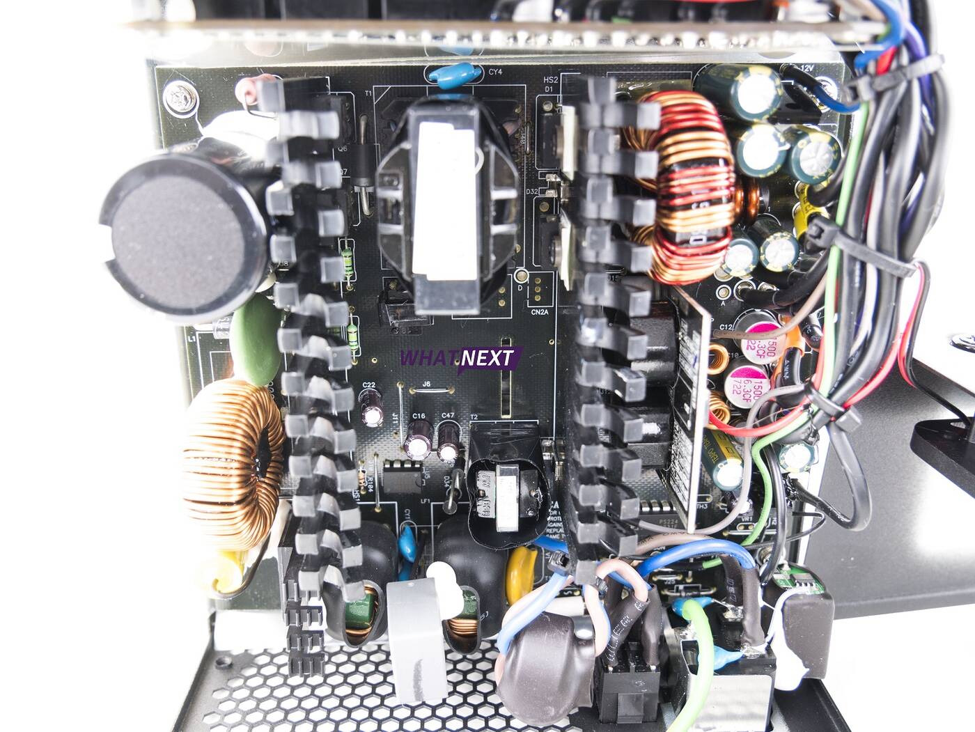 Zasilacz został zabezpieczony plombą, więc każda próba rozebrania go skutkuje przerwaniem gwarancji. Za chłodzenie odpowiada 135 mm konstrukcja (RL4Z S1352512H) firmy Globe Fan. Jego maksymalne obroty wynoszą 1500 RPM jednakże są one dopasowywane do aktualnych wymagań. Wnętrze Protona zostało zaprojektowane przez firmę CWT. Największy kondensator jest firmy Teapo i ma parametry 400 V i 470 uF. Może on pracować do temperatury 105°C. Zasilacz posiada przetwornicę DC-DC oraz aktywne PFC. Generalnie wnętrze jest bardzo dobrze zaprojektowane oraz wykonane. Zasilacz posiada sześć zabezpieczeń: UVP (zabezpieczenie podnapięciowe), OVP (zabezpieczenie przeciwprzepięciowe), SCP (zabezpieczenie przeciwzwarciowe), OPP (zabezpieczenie przeciwprzeciążeniowe), OCP (zabezpieczenie nadprądowe) oraz OTP (zabezpieczenie termiczne).