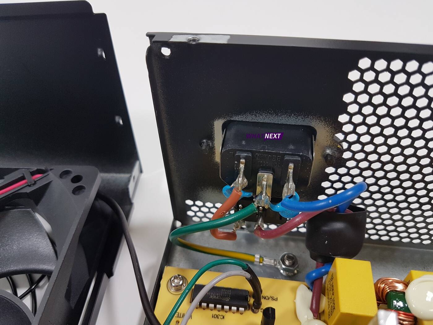 Za chłodzenie odpowiada 120 mm wentylator Evercool EFS-12E12L. Jego maksymalna prędkość to 1400 rpm i został on oparty o łożysko ślizgowe. Wnętrze wygląda na dobrze wykonane. Kondensatory elektrolityczne są produkcji tajwańskiej. Największy z nich to model firmy CapXon o parametrach 150 uF i 450 V. Może on pracować w temperaturze do 85°C. Produkt LC-Power posiada aktywne PFC i przetwornicę DC-DC. Jego zabezpieczenia to: OVP (zabezpieczenie przed zbyt wysokim napięciem na wyjściu),OPP (zabezpieczenie przed przeciążeniem), OCP (zabezpieczenie przed przeciążeniem stabilizatora), SCP (zabezpieczenie przeciwzwarciowe), UVP (zabezpieczenie przed zbyt niskim napięciem na wyjściu).