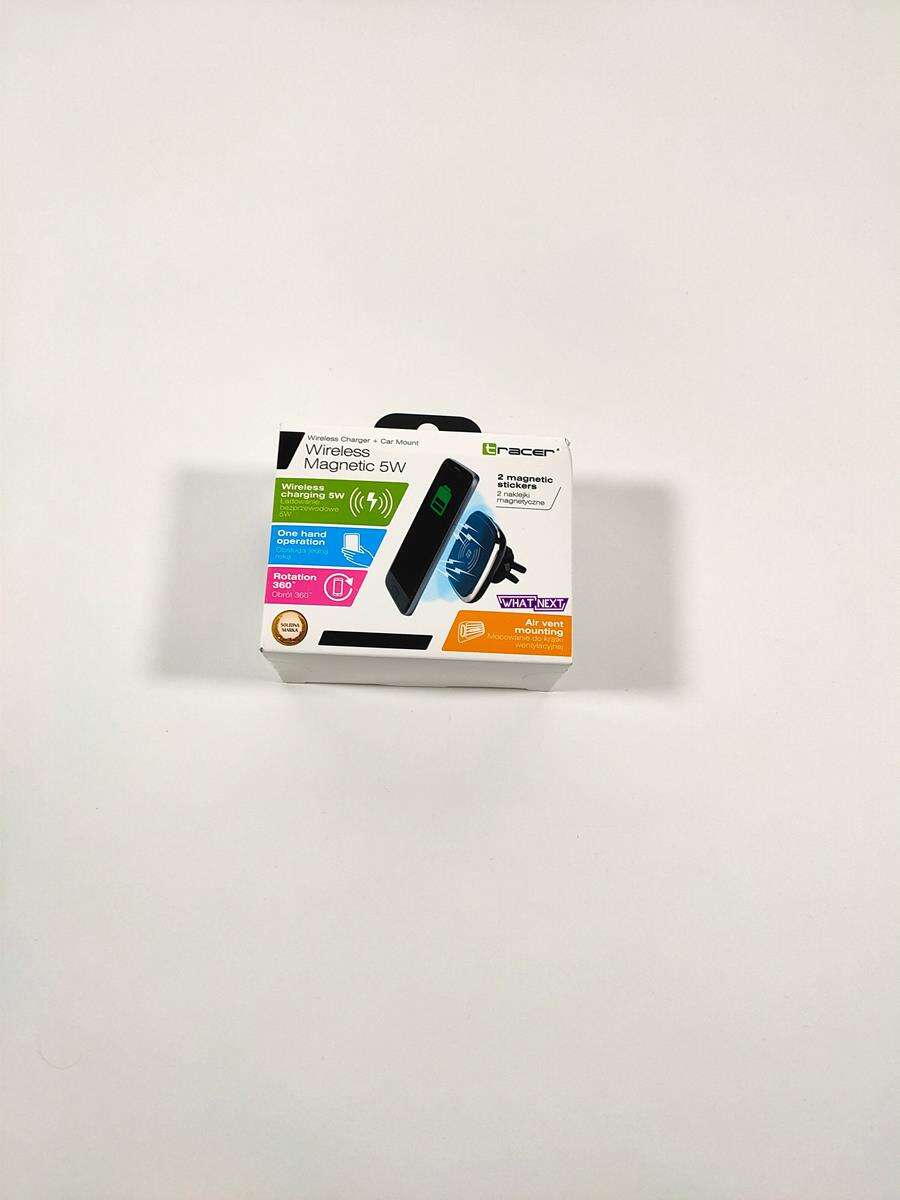 Zacznijmy od bezprzewodowej ładowarki samochodowej. W pudełku jest tylko opisywane urządzenie, nie ma niczego więcej. Tracer Wireless Magnetic 5W trzeba podłączyć do ładowarki samochodowej 2,1 A (kablem micro USB), o czym musicie pamiętać i mieć taką w samochodzie.