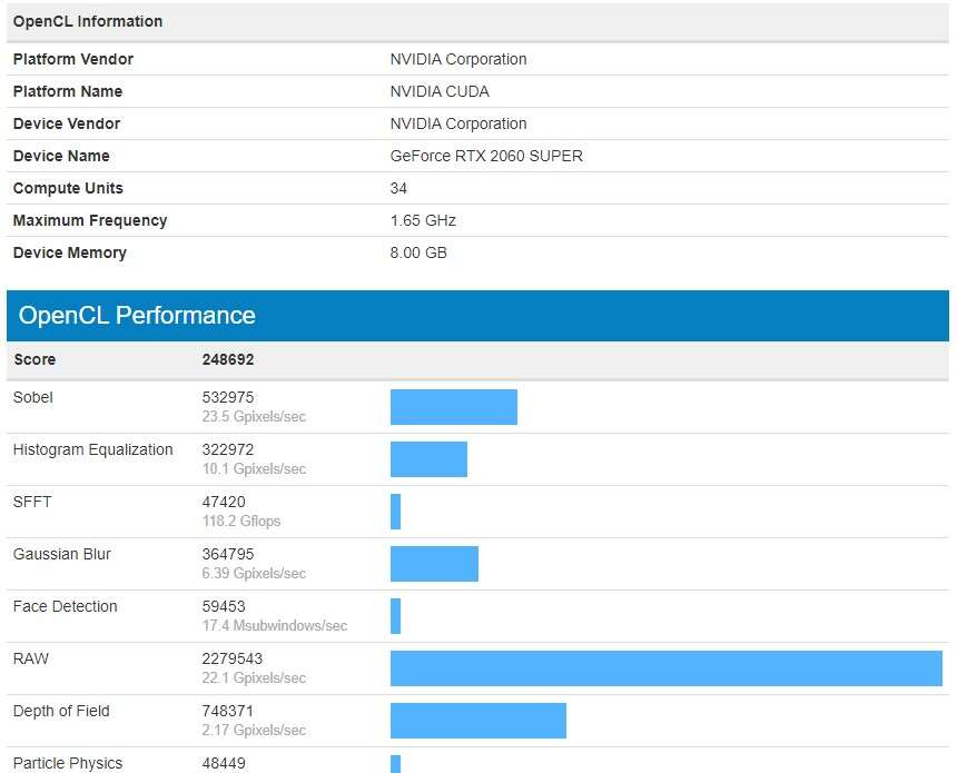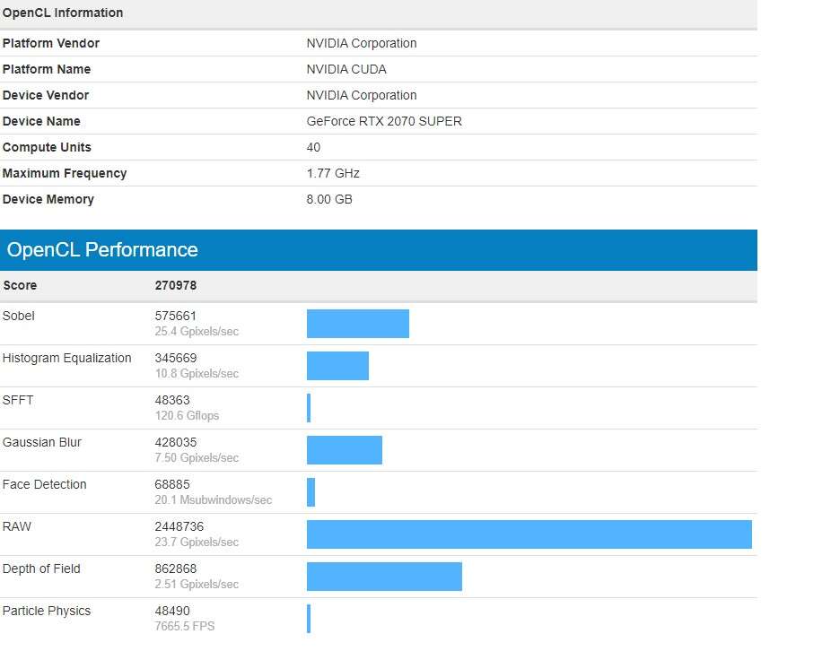 Potwierdza to następny test w Geekbench, który uwzględnia sprawdzian dla kart graficznych w ramach wydajności OpenCL. Na środku znajdziecie wyniki kart obecnej generacji (GeForce RTX 2000), a po bokach wyczyny nowych SUPER modeli. Chociaż platforma testowa jest zupełnie inna, to i tak różnicę widać, jak na dłoni, a zwłaszcza, kiedy przeniesiemy ją na procentowe poletko. Kolejno 9% i 17%, choć tak duży wzrost wydajności w przypadku RTX 2060 SUPER jest również obarczony wyższą o 50$ ceną (399$).