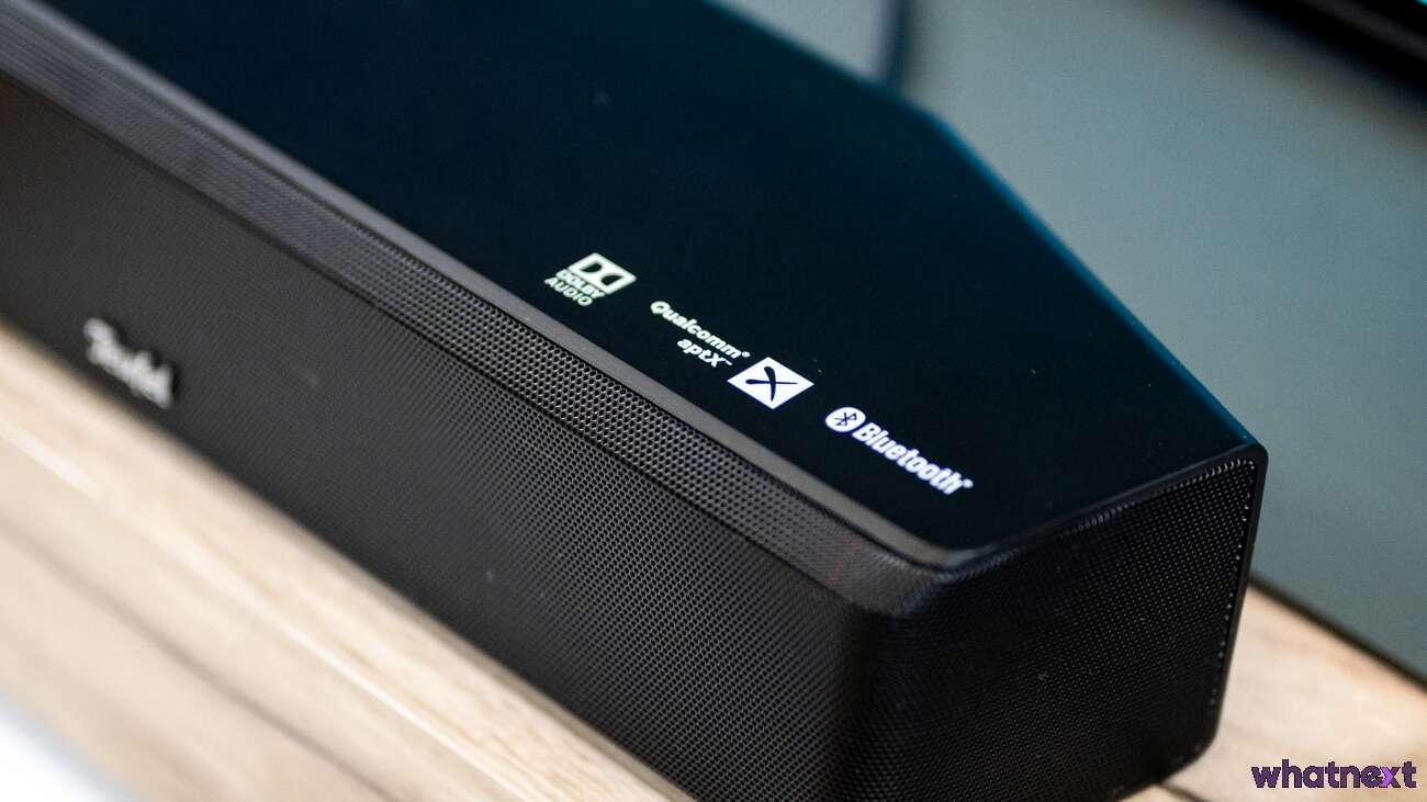 Niech nie zwiedzie Was kompaktowa konstrukcja. Soundbar skrywa w sobie cztery głośniki szerokopasmowe o średnicy 50 mm, a całkowita moc wyjściowa to 80W. Do tego mamy woofer w subwooferze o średnicy 165mm z maksymalnym poziomem ciśnienia akustycznego wynoszącym 104 db/m. Warto też wspomnieć o technologii Dynamore Ultra, której zaimplementowanie było możliwe dzięki głośnikom bocznym soundbaru. Jak to działa? W dużym uproszczeniu dźwięk emitowany jest na boki, a po odbiciu od ścian trafia do nas w przestrzennej formie. A czy to działa?