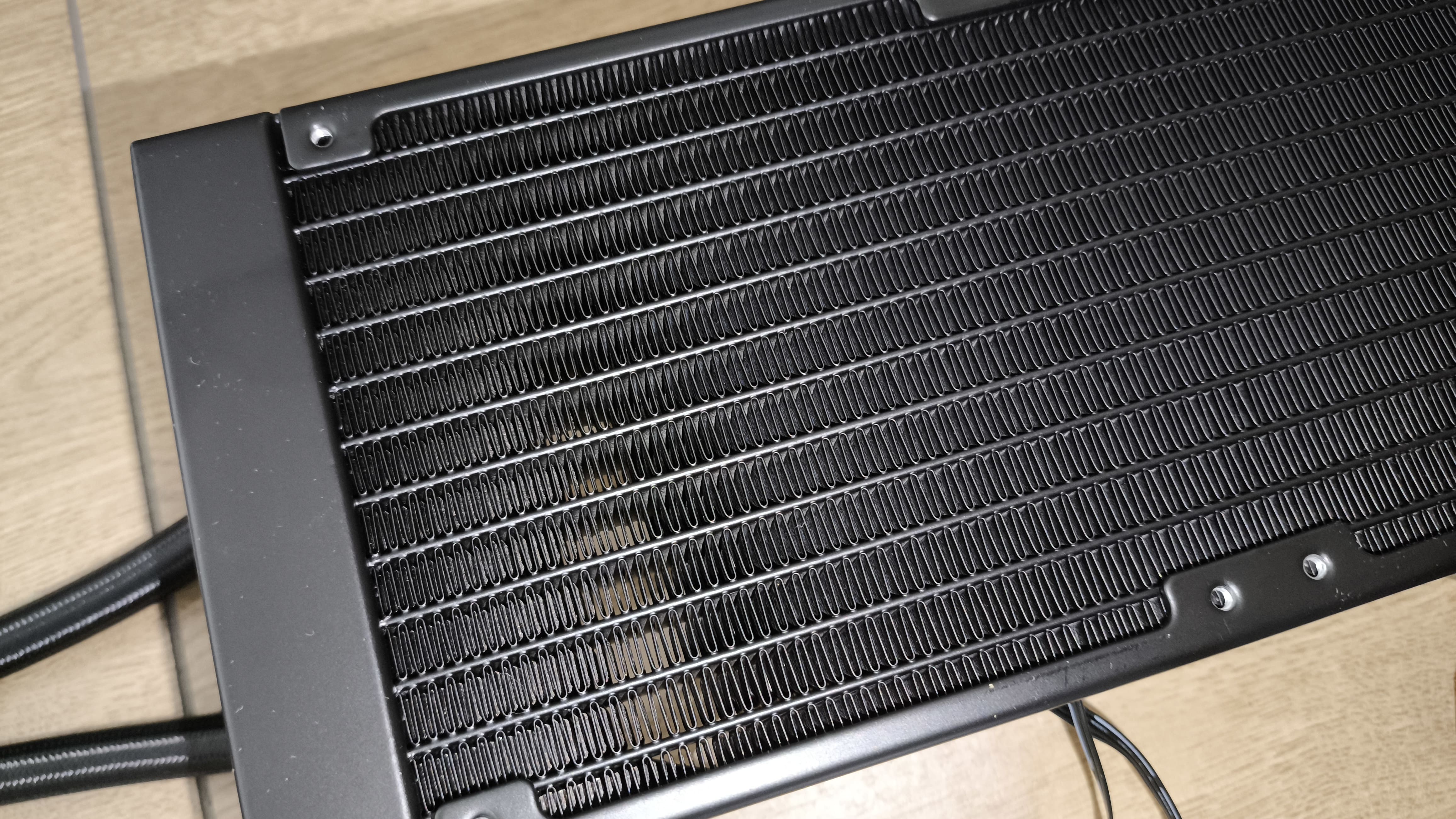 Jeśli chodzi o gęstość finów, zastosowano klasyczną wartość na poziomie 20–21, co jest standardem w przypadku gotowych zestawów AiO. Tego rodzaju konfiguracja wymaga zastosowania wentylatorów o wyższym ciśnieniu statycznym, aby w pełni wykorzystać możliwości radiatora i zapewnić optymalną efektywność chłodzenia. Warto również zauważyć, że finy są ciasno upakowane i równomiernie rozmieszczone, bez żadnych widocznych defektów produkcyjnych ani wygięć, co świadczy o wysokiej jakości wykonania.