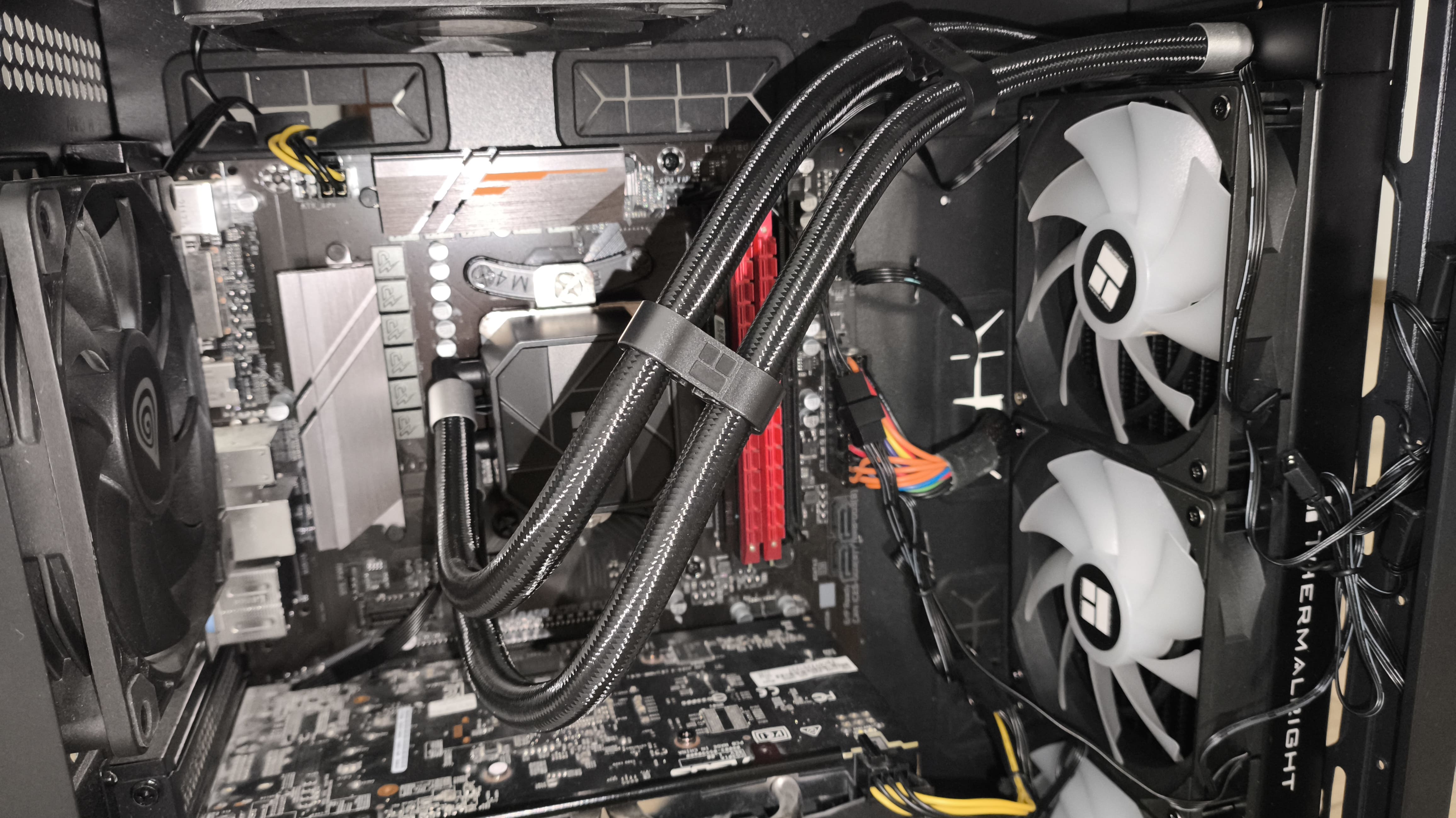 Przewody cieczy, jak już wcześniej wspomniałem, mają długość 450 mm, co w zupełności wystarczy do montażu w większości średnich i większych obudów typu mid- i full-tower. Węże osłonięto białym oplotem nylonowym – trwałym, ale dość sztywnym. W porównaniu do materiałowych oplotów, jakie spotyka się w droższych konstrukcjach, wygląda on bardziej technicznie niż stylowo.