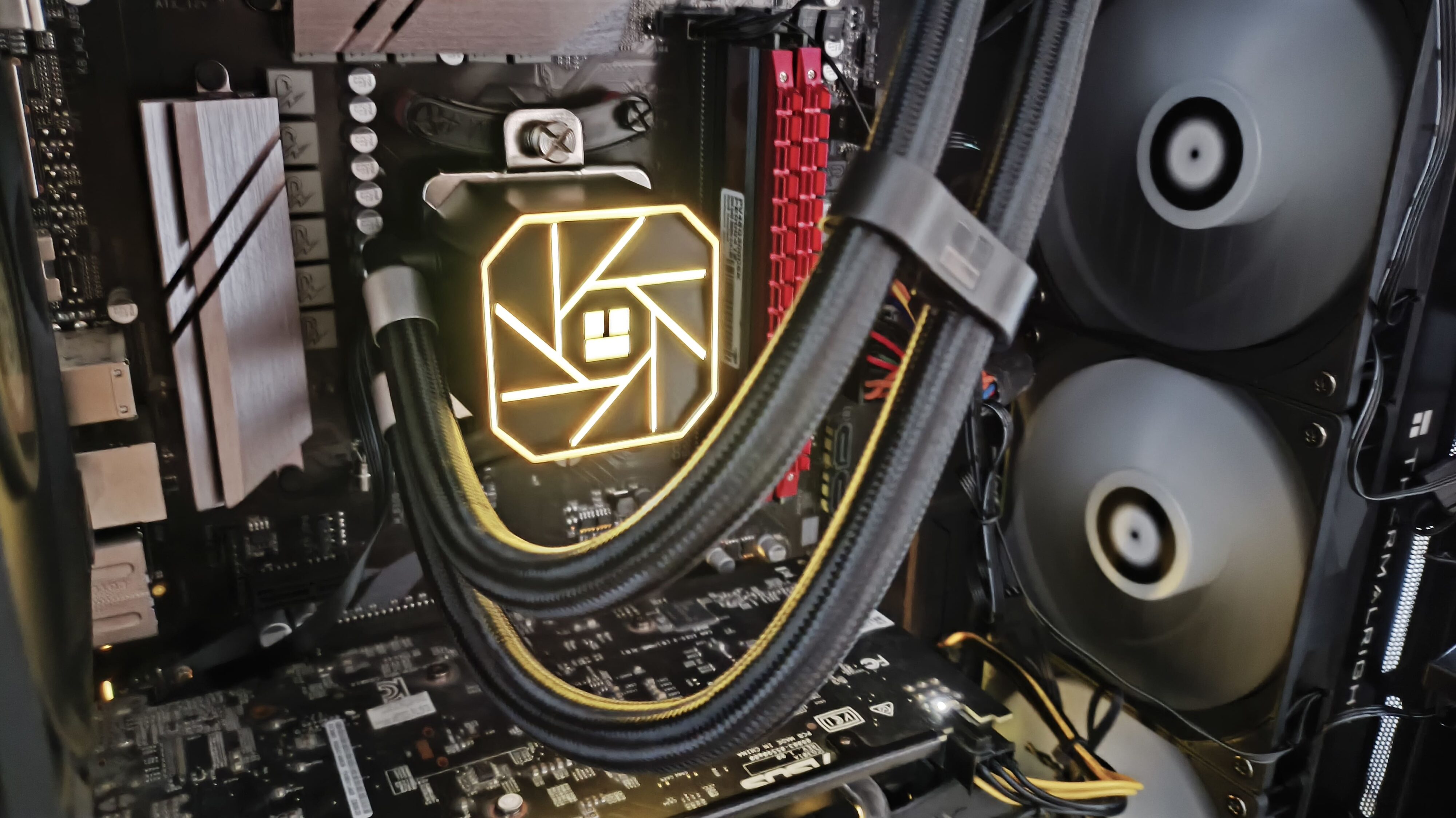 Przykuwający oko ośmiokątny blok pompki AIO czwartej generacji wykorzystuje autorską obudowę czwartej generacji pompy, której wzornictwo opiera się na wirującym prostokątnym motywie oraz podświetleniu ARGB w formie halo umieszczonym pod podświetlanym logo, tworząc barwny i efektowny wygląd.