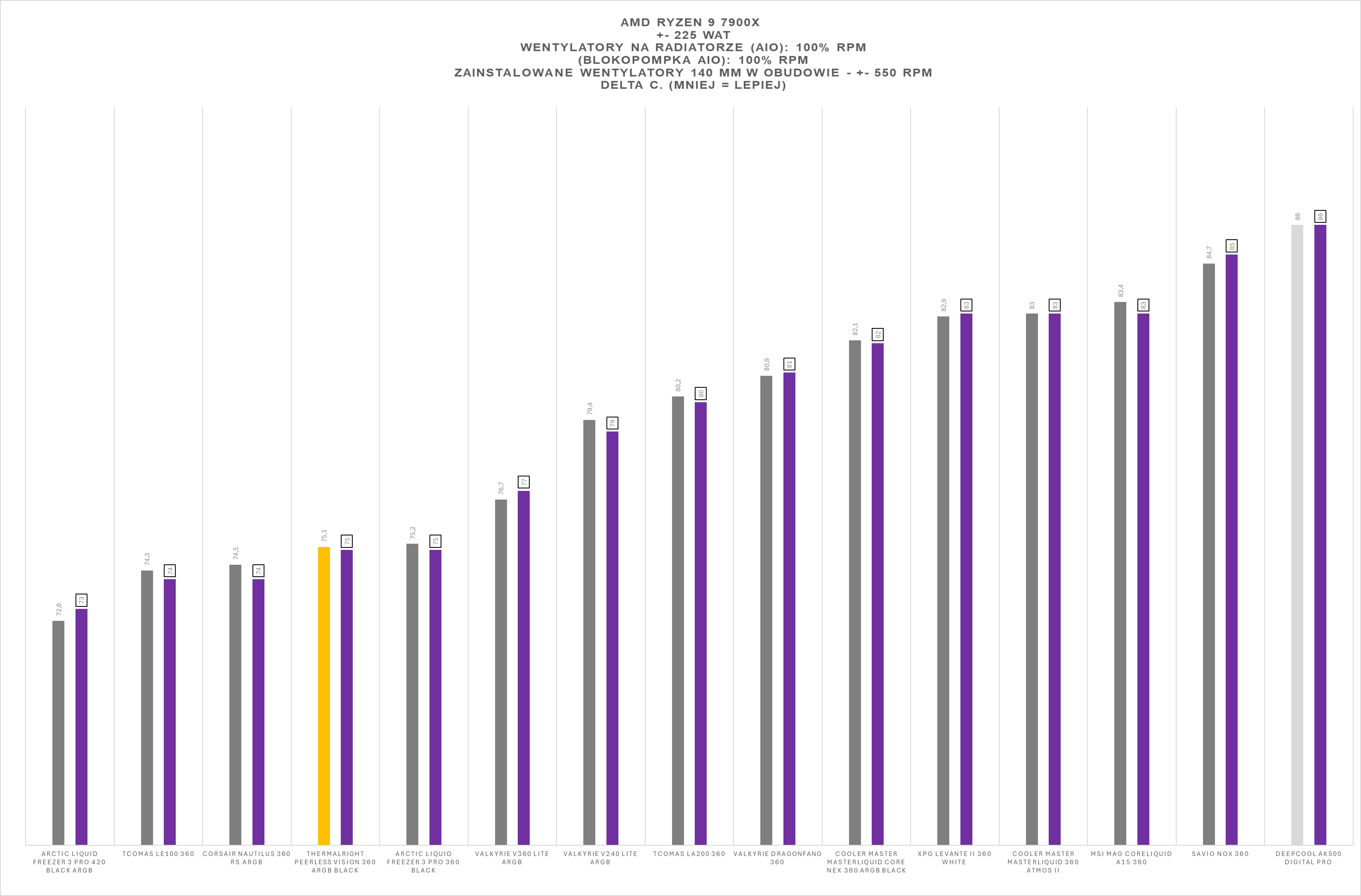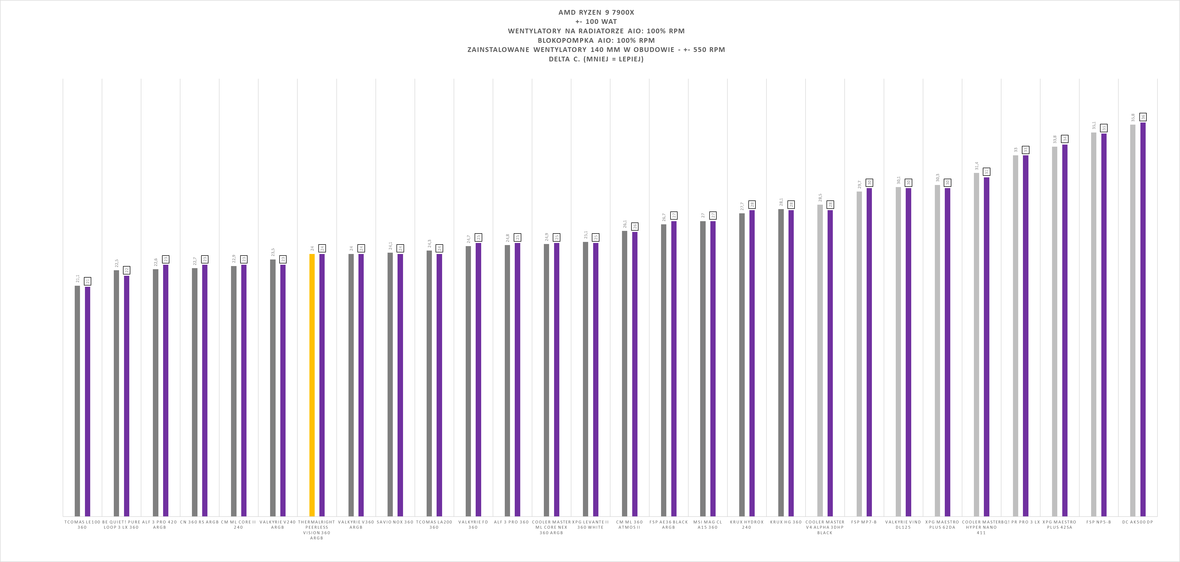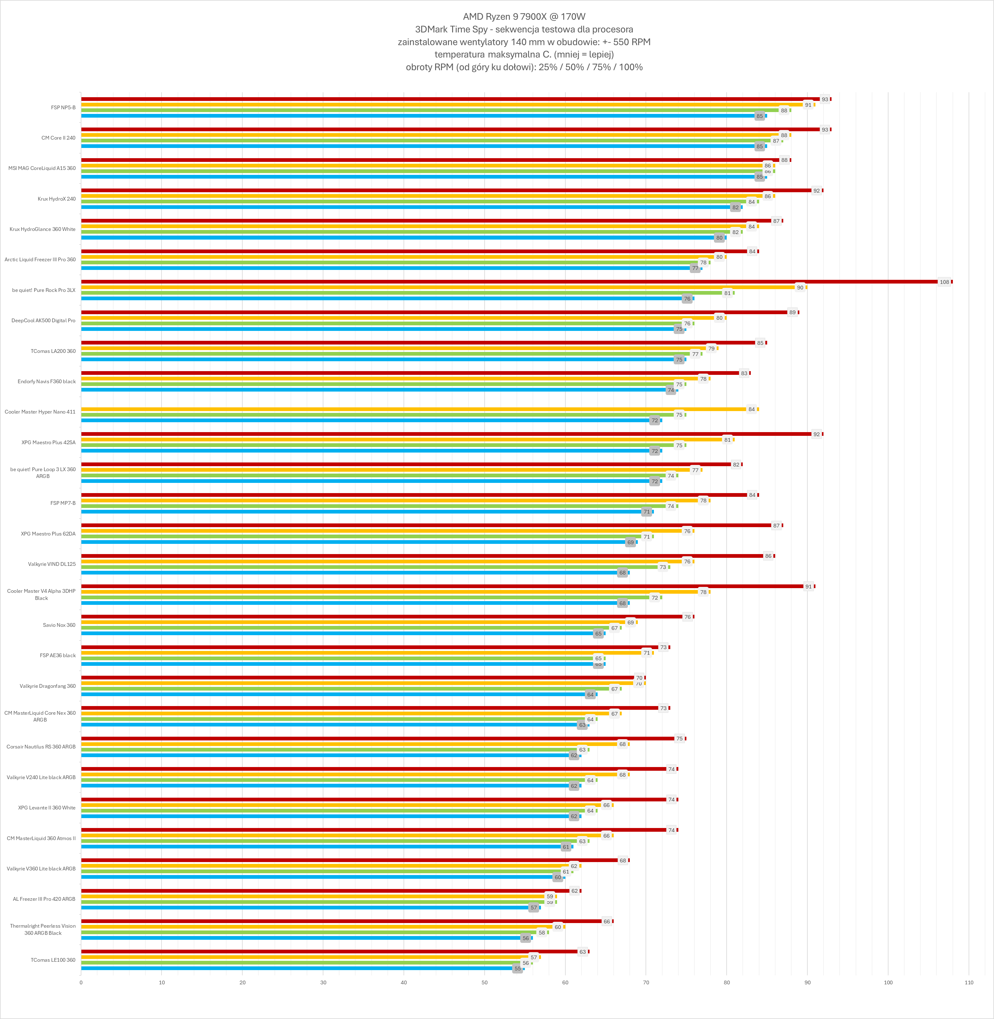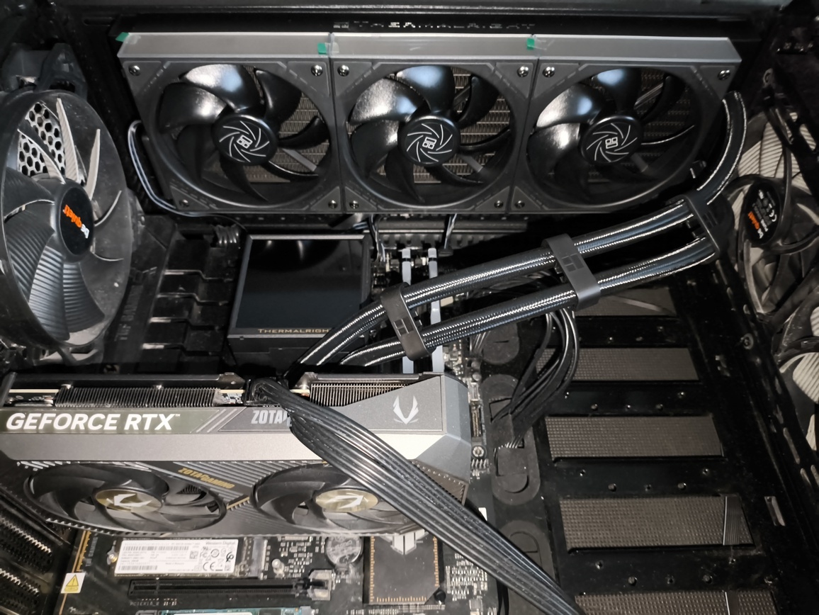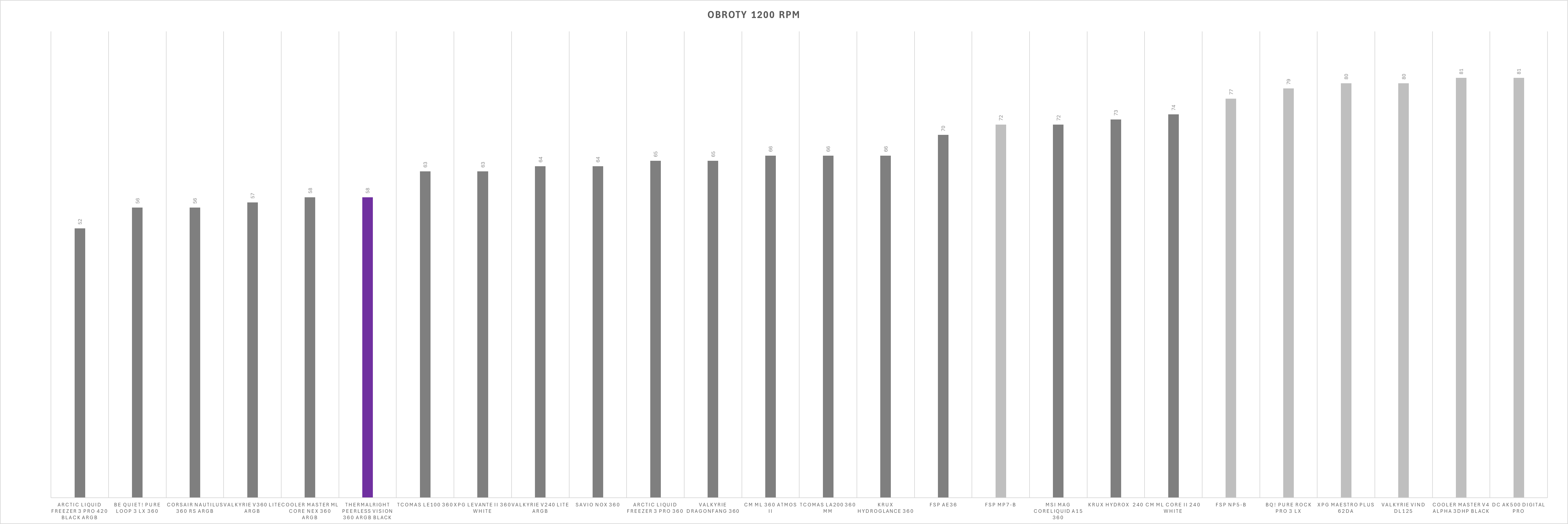 Kultura pracy stoi na dobrym poziomie, choć – jak to zwykle bywa w przypadku chłodzeń 360 mm – sporo zależy od ustawień krzywych wentylatorów. Same jednostki TL-M12Q PWM zostały wyraźnie zaprojektowane pod wydajność, co oznacza, że przy wyższych obrotach są mocno słyszalne, ale jednocześnie oferują odpowiednią siłę przepływu powietrza przez radiator.