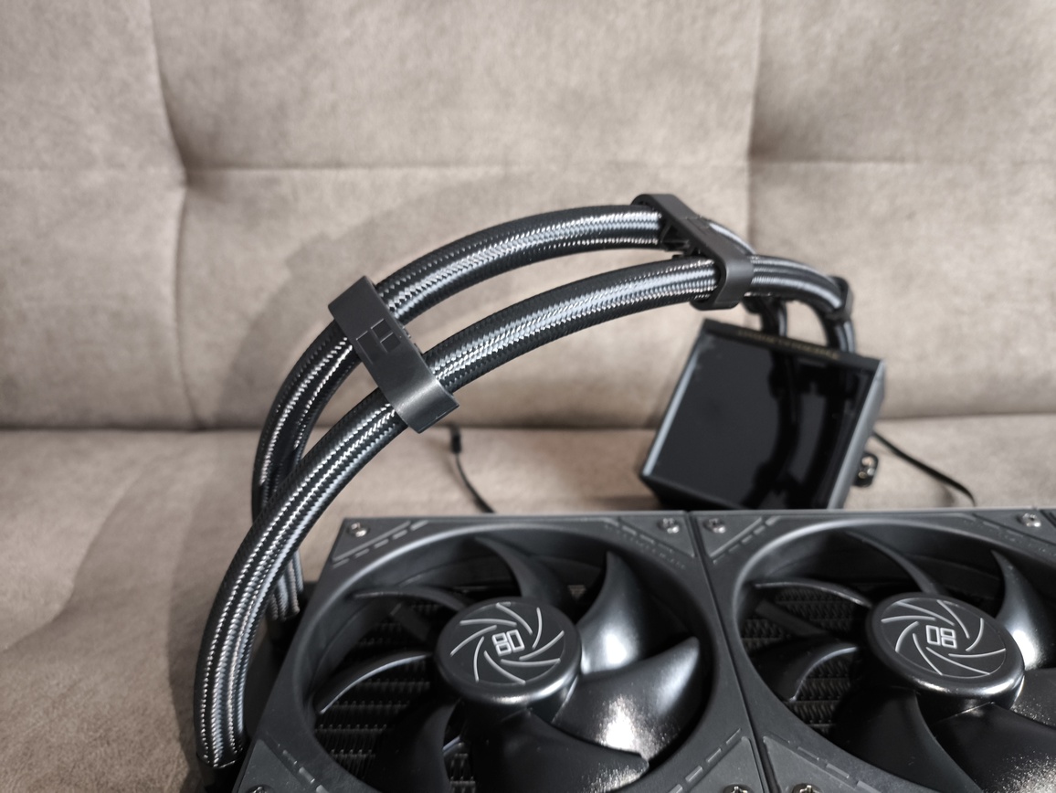 Na plus należy zaliczyć również długość węży wynoszącą około 400 mm. To w praktyce standard w tej klasie AiO, ale jednocześnie długość w pełni wystarczająca do wygodnego montażu zarówno na topie, jak i froncie obudowy – nawet w większych konstrukcjach. Węże są elastyczne i zakończone ruchomymi króćcami, co dodatkowo ułatwia ich prowadzenie i ogranicza naprężenia.