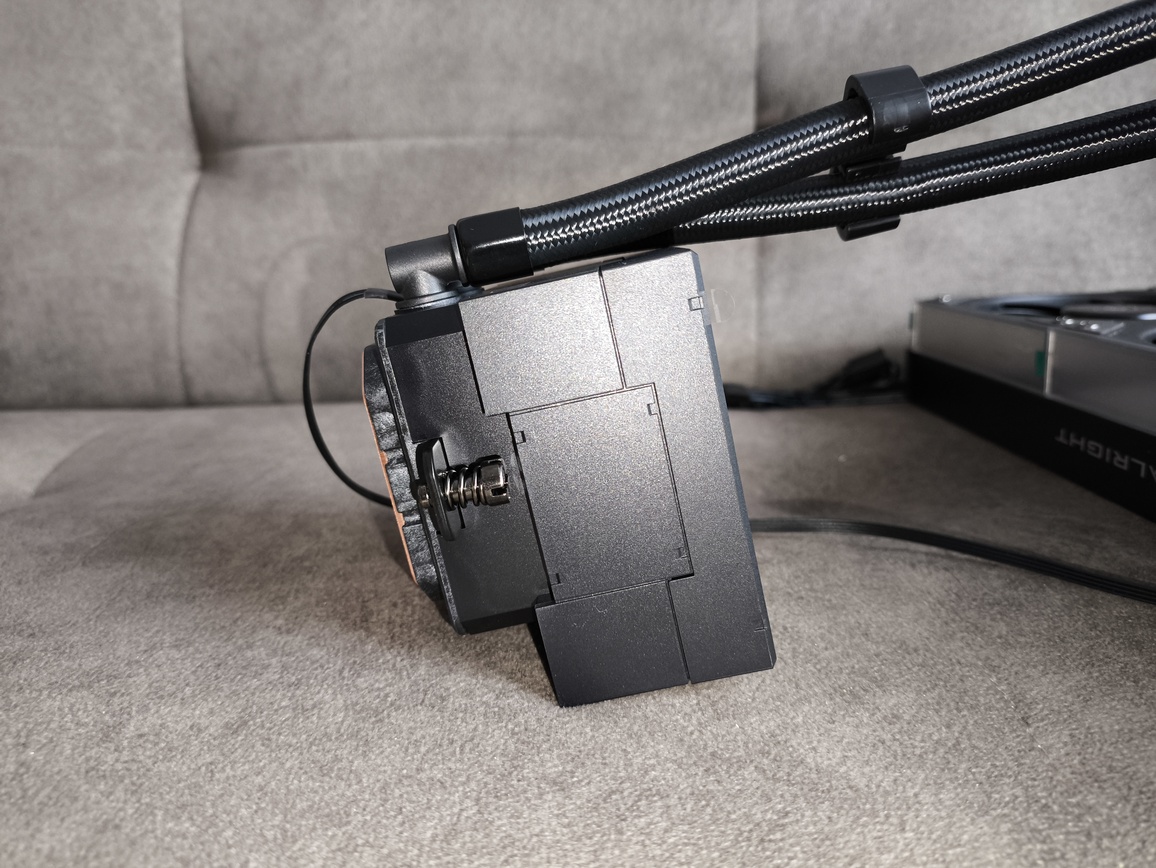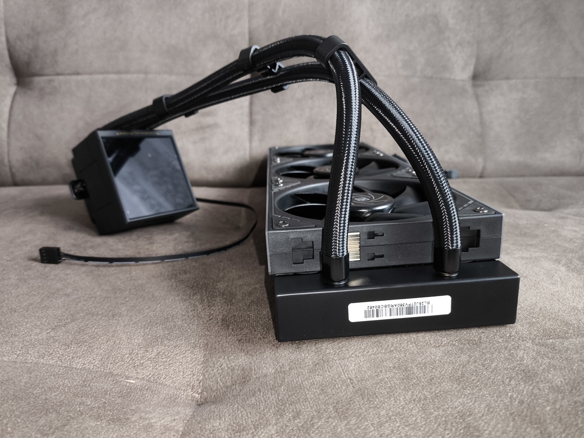 Sam radiator, węże i blokopompka prezentują się solidnie i spójnie stylistycznie. Nie ma tu elementów, które sprawiałyby wrażenie tanich czy niedopracowanych. Całość jest raczej stonowana, ale z wyraźnym gamingowym akcentem w postaci ARGB i ekranu.