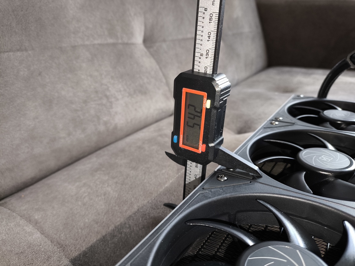 Po zamontowaniu fabrycznych wentylatorów całkowita grubość zestawu wzrasta do około 52 mm, co warto uwzględnić przy planowaniu montażu – szczególnie w górnej części obudowy, gdzie przestrzeń bywa ograniczona.