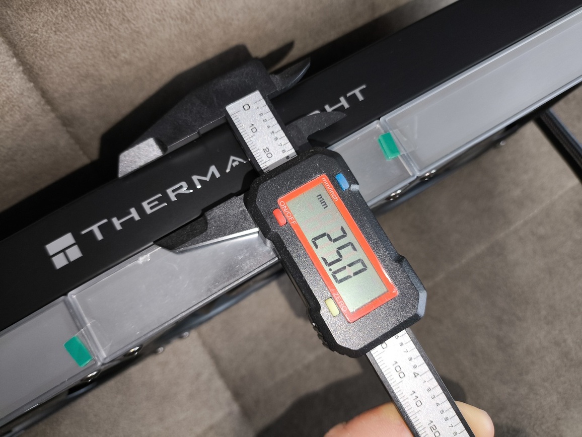 W modelu Thermalright Peerless Vision 360 ARGB Black zastosowano klasyczną chłodnicę aluminiową o długości około 397 mm, szerokości 120 mm oraz grubości 27 mm. Jest to standardowy format dla zestawów AiO 360 mm, co oznacza szeroką kompatybilność z większością obudów wspierających ten rozmiar.