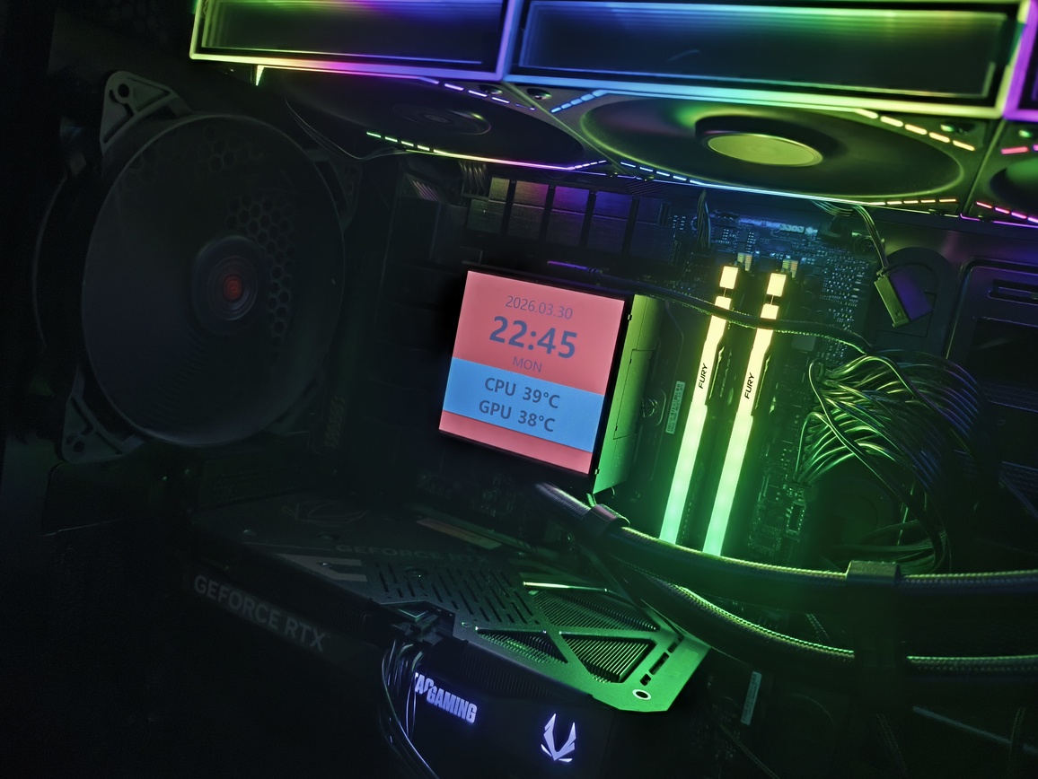Na górze umieszczono ekran LCD o przekątnej około 3.95 cala, wykorzystujący matrycę IPS. Jest to jeden z wyróżników tej konstrukcji. Sam moduł nie jest fizycznie obrotowy, jednak orientację wyświetlanego obrazu można zmieniać programowo, co pozwala dopasować go do różnych konfiguracji montażowych.