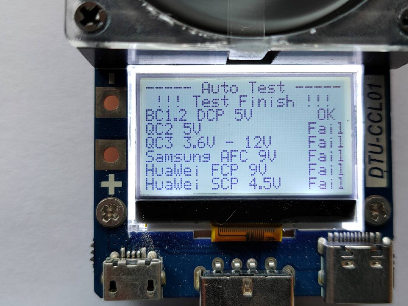 Testy przeprowadziłem przy wykorzystaniu elektronicznego obciążenia USB DTU-CCL01. Pozwala ono na zmierzenie obsługi różnych standardów szybkiego ładowania oraz rozładowanie powerbanka. To ostatnie odbywało się przy natężeniu 2 A i napięciu 5 V. Zmierzona wartość w mAh została przemnożona przez 1,35 w celu uzyskania realnej wartości pojemności (baterie w powerbankach najczęściej działają z napięciem 3,7 V stąd taki przelicznik, jeśli jest inaczej to zaznaczę to w teście).