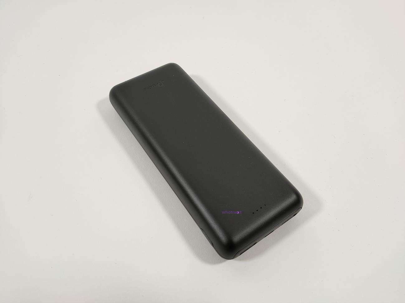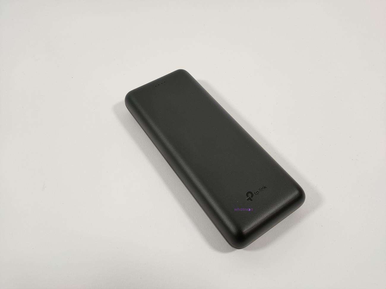 TP-Link TL-PB20000 wygląda całkowicie normalnie. Jest on cały czarny i kompletnie niczym się nie wyróżnia. Jego dokładne wymiary to 157,8 mm x 65,4 mm x 24 mm i wazy on 376 g. Przypomina on więc trochę małą cegłę – jednakże przy pojemności 20000 mAh ciężko o inne wykonanie.