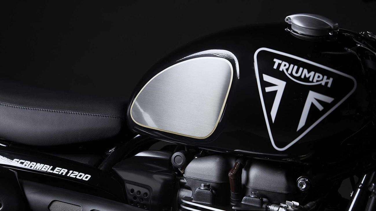 Triump Scrambler 1200 Bond Edition otrzymał zaciemnioną kolorystykę wraz z mnóstwem napisów „007” i „Bond Edition”. Ponadto dzierży skórzane siodło premium z haftowanym z tyłu „Bond Edition”, wyświetlacz TFT dla konkretnego modelu ze specjalnym komunikatem startowym 007, anodowane na czarno błotniki, tłumik Arrow z końcówkami z włókna węglowego, reflektor ze stali nierdzewnej i czarne regulatory tylnych kół.