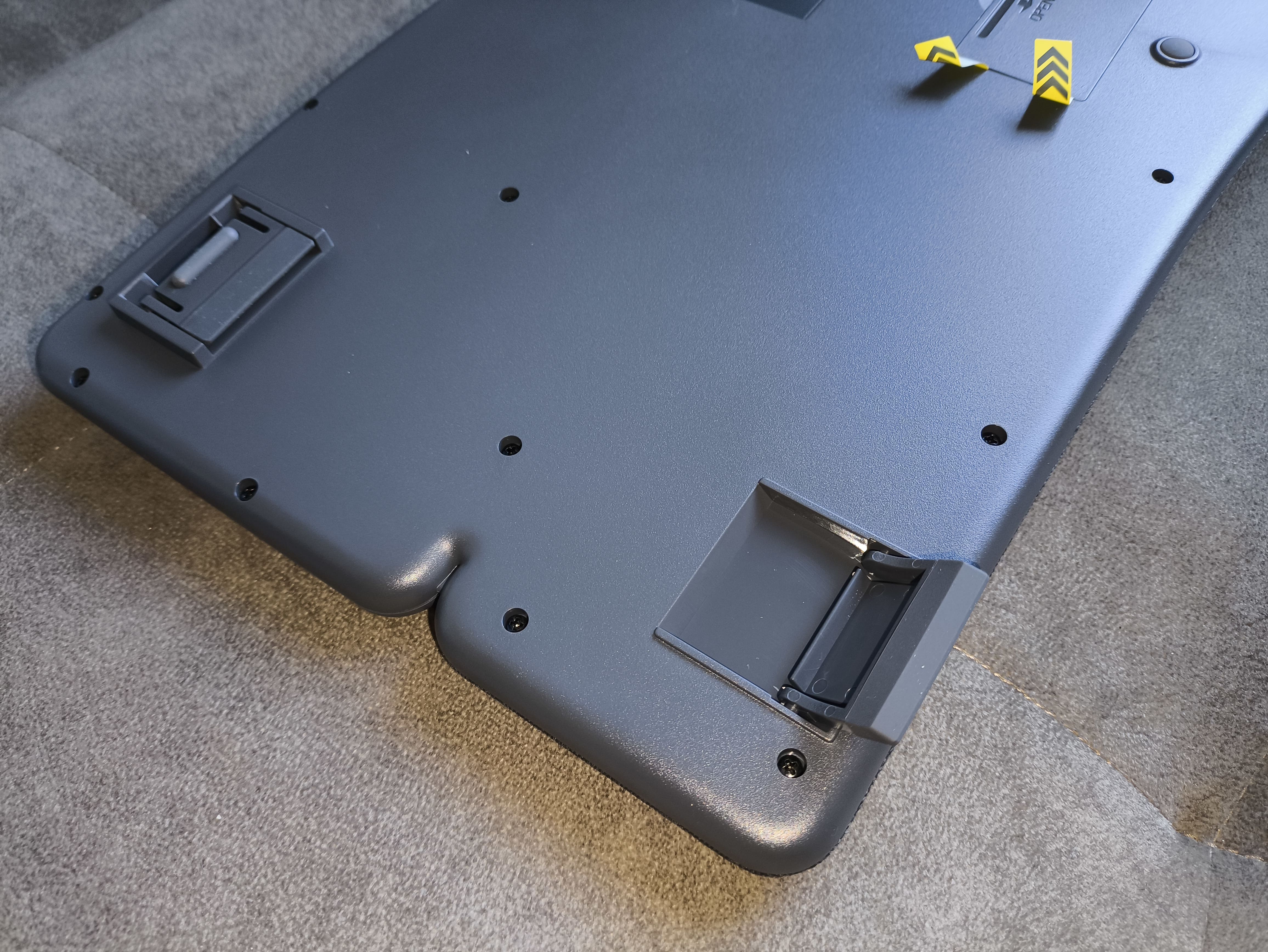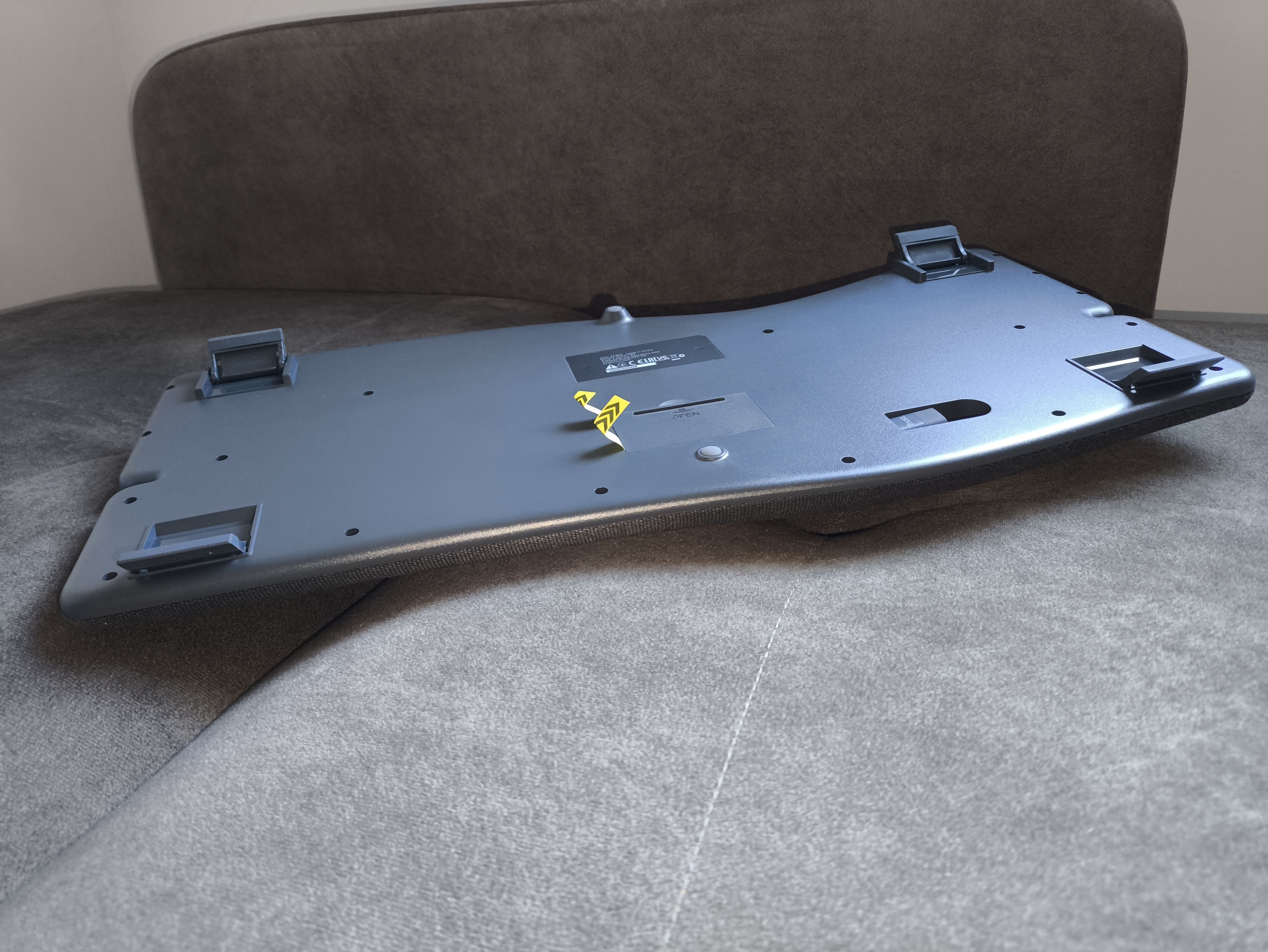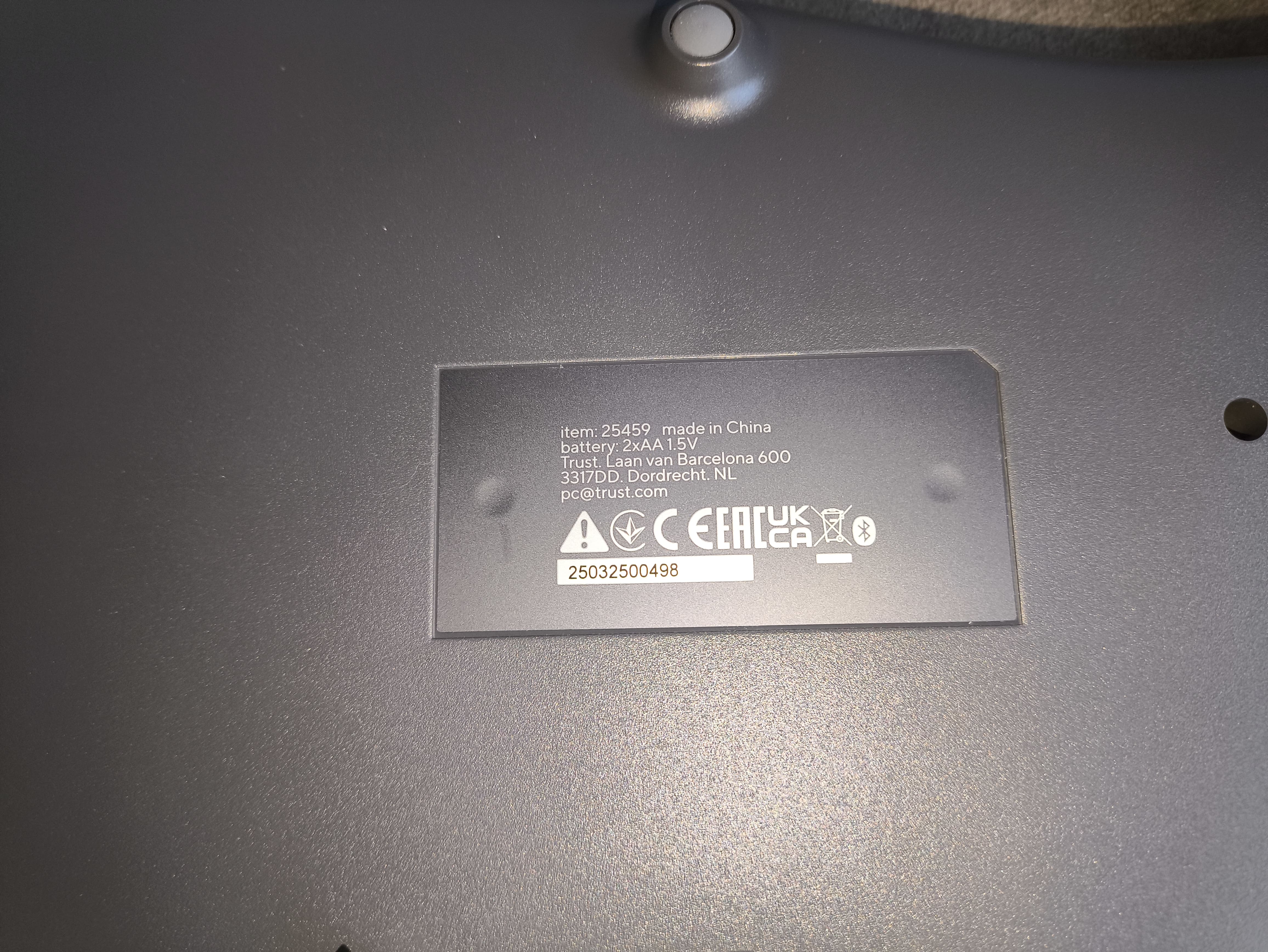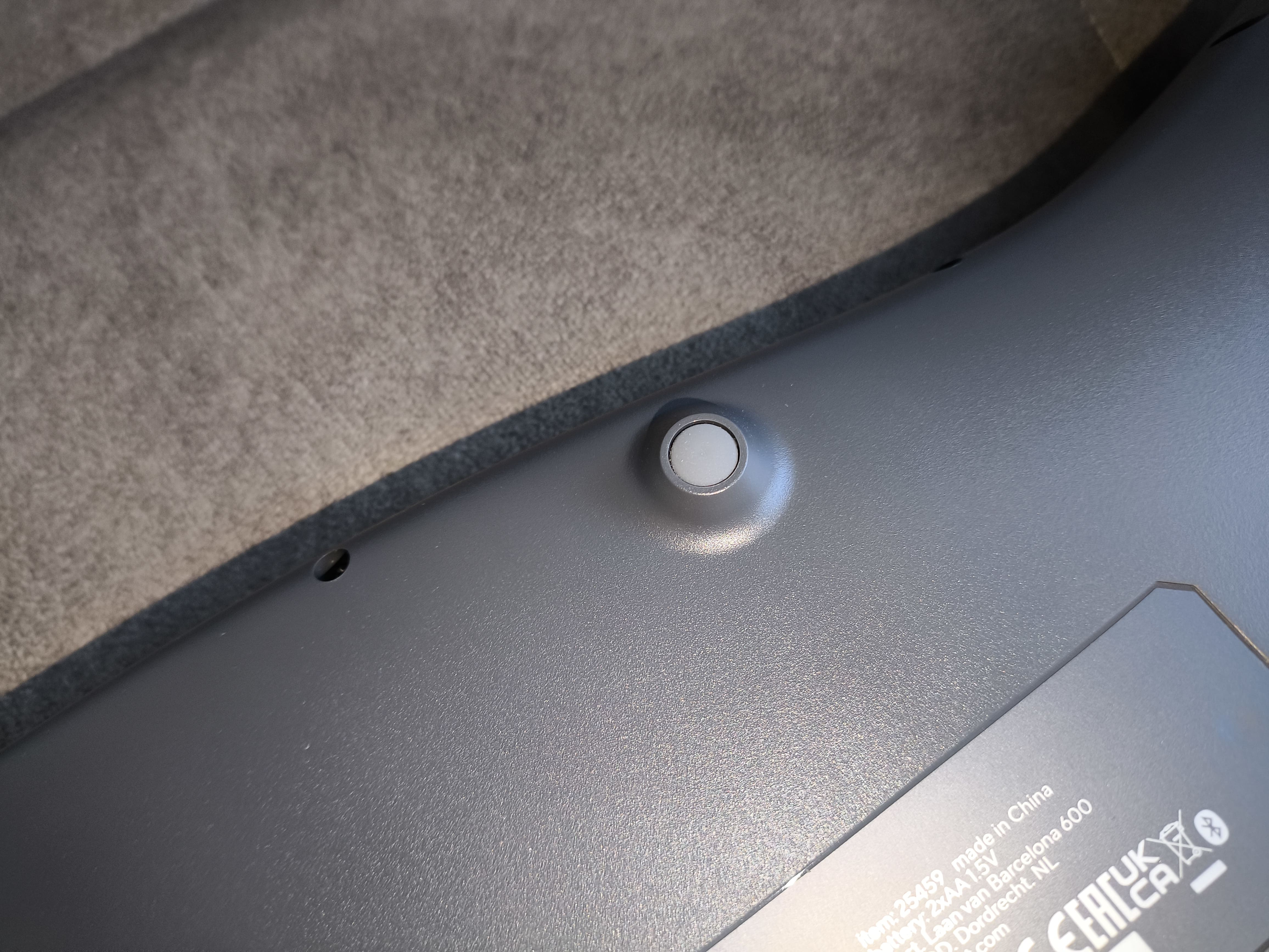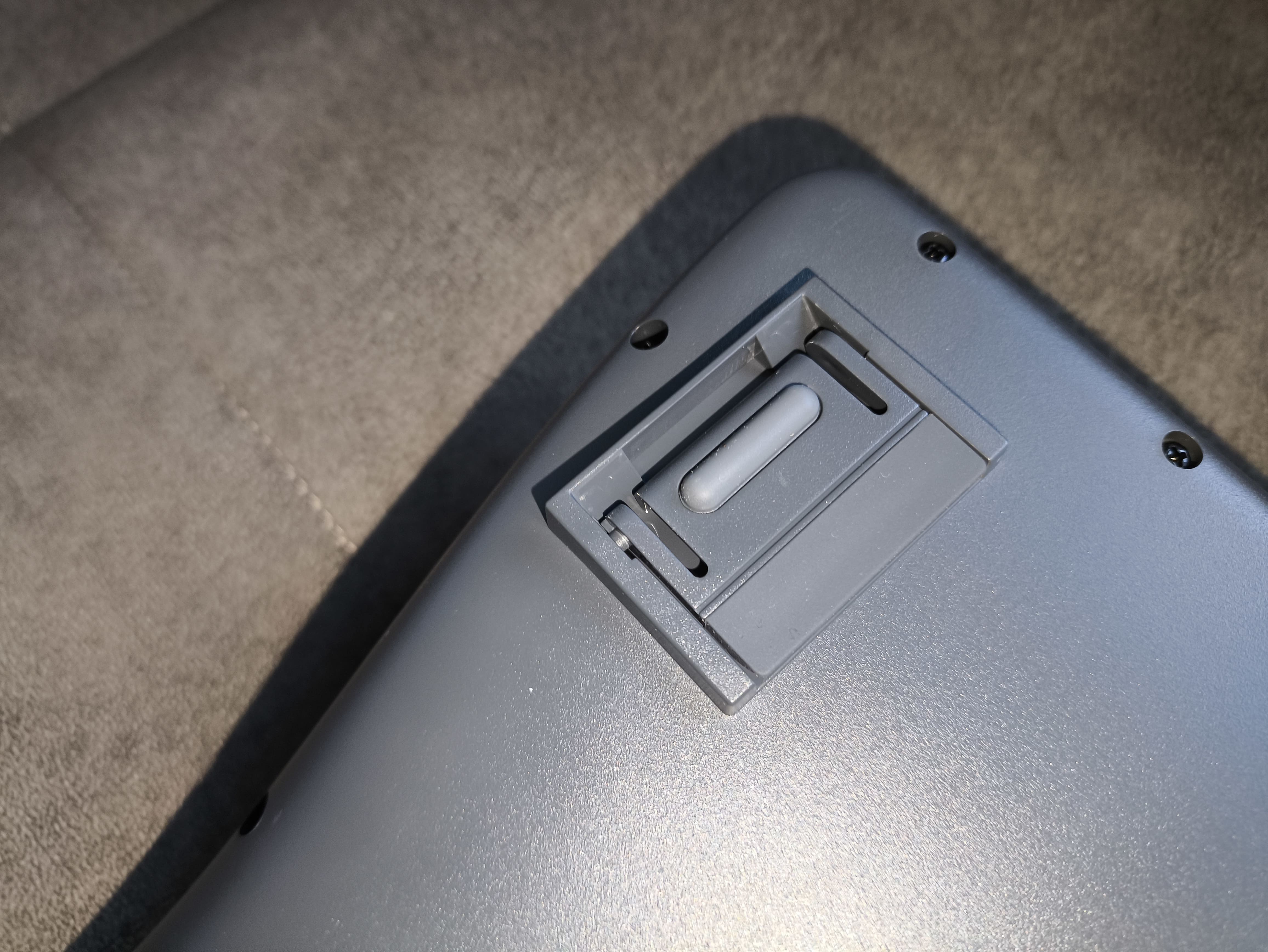 Na spodzie klawiatury przewidziano specjalną szczelinę do przechowywania odbiornika bezprzewodowego, co ułatwia transport i minimalizuje ryzyko zgubienia małego elementu. Do zasilania wymagane są dwie baterie AA, które należy umieścić w przeznaczonym dla nich, odwróconym dołem, wejściu.