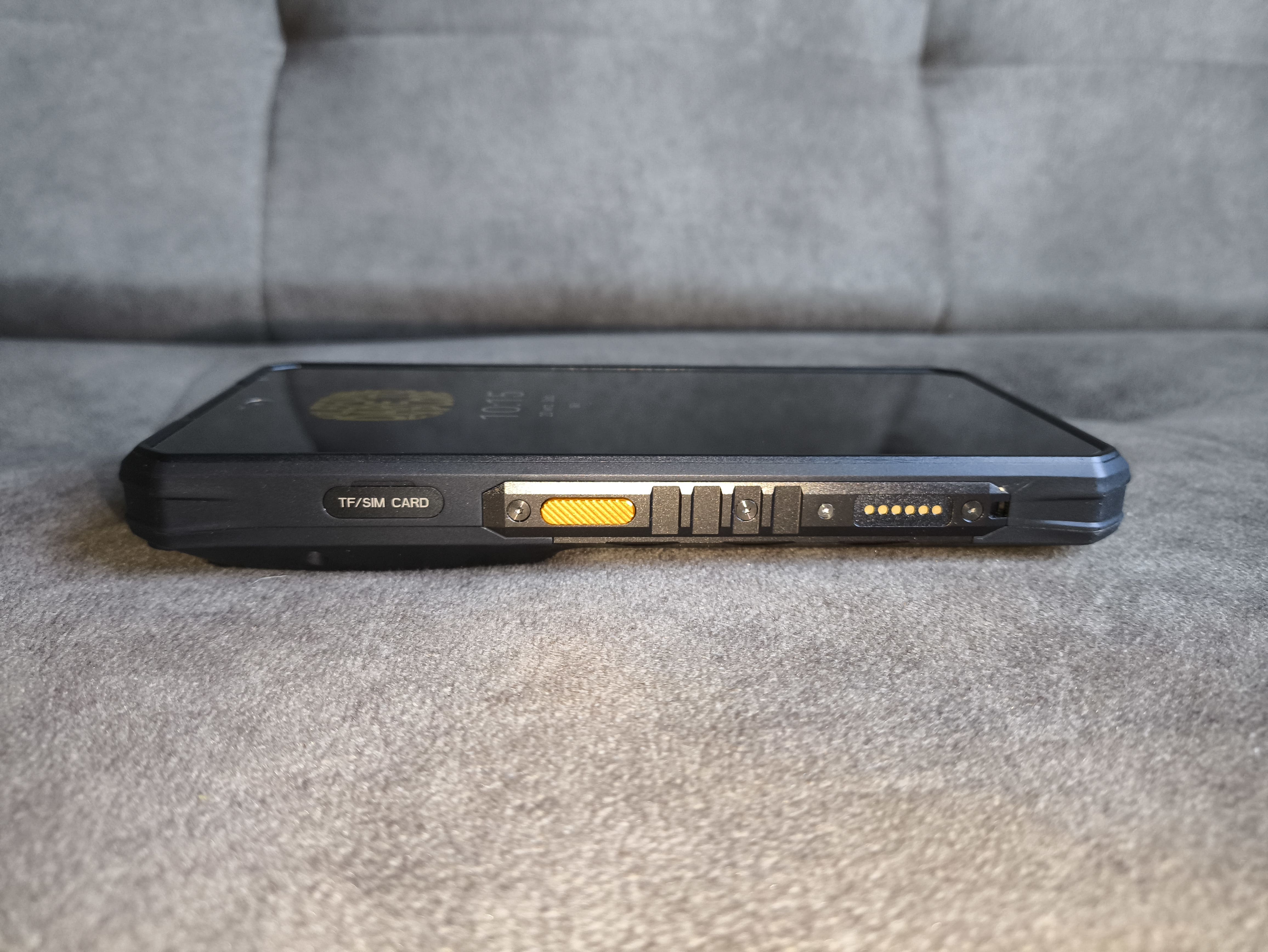 - Zabezpieczone Porty: Port USB-C i gniazdo słuchawkowe 3,5 mm są chronione gumowymi zaślepkami. Należy pamiętać o ich szczelnym zamknięciu dla zachowania pełnej wodoszczelności.