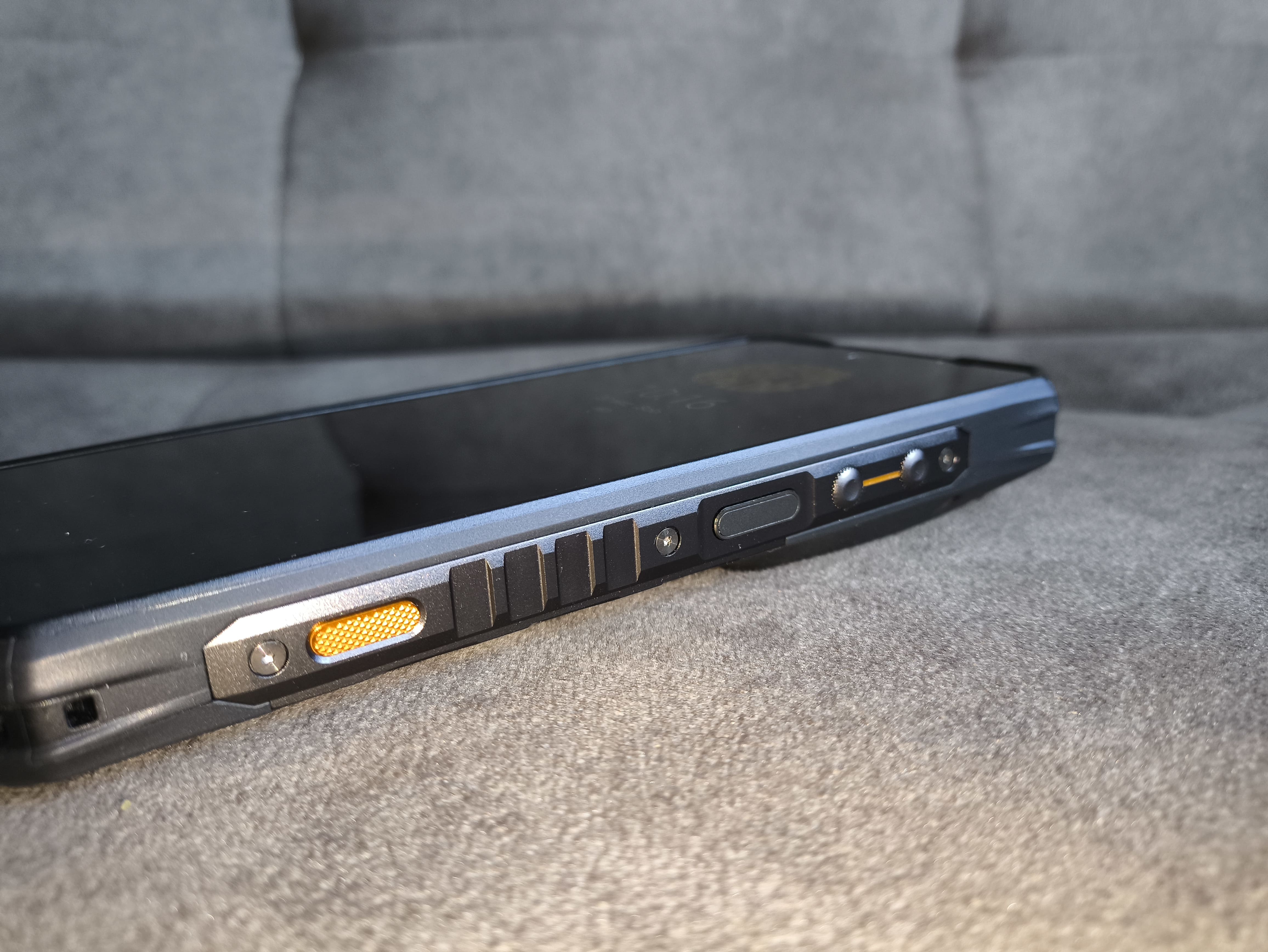 - Programowalne Przyciski: Dwa anodowane, pomarańczowe przyciski – jeden spust migawki aparatu, drugi jako przycisk funkcyjny, któremu można przypisać własne zadanie (np. SOS).