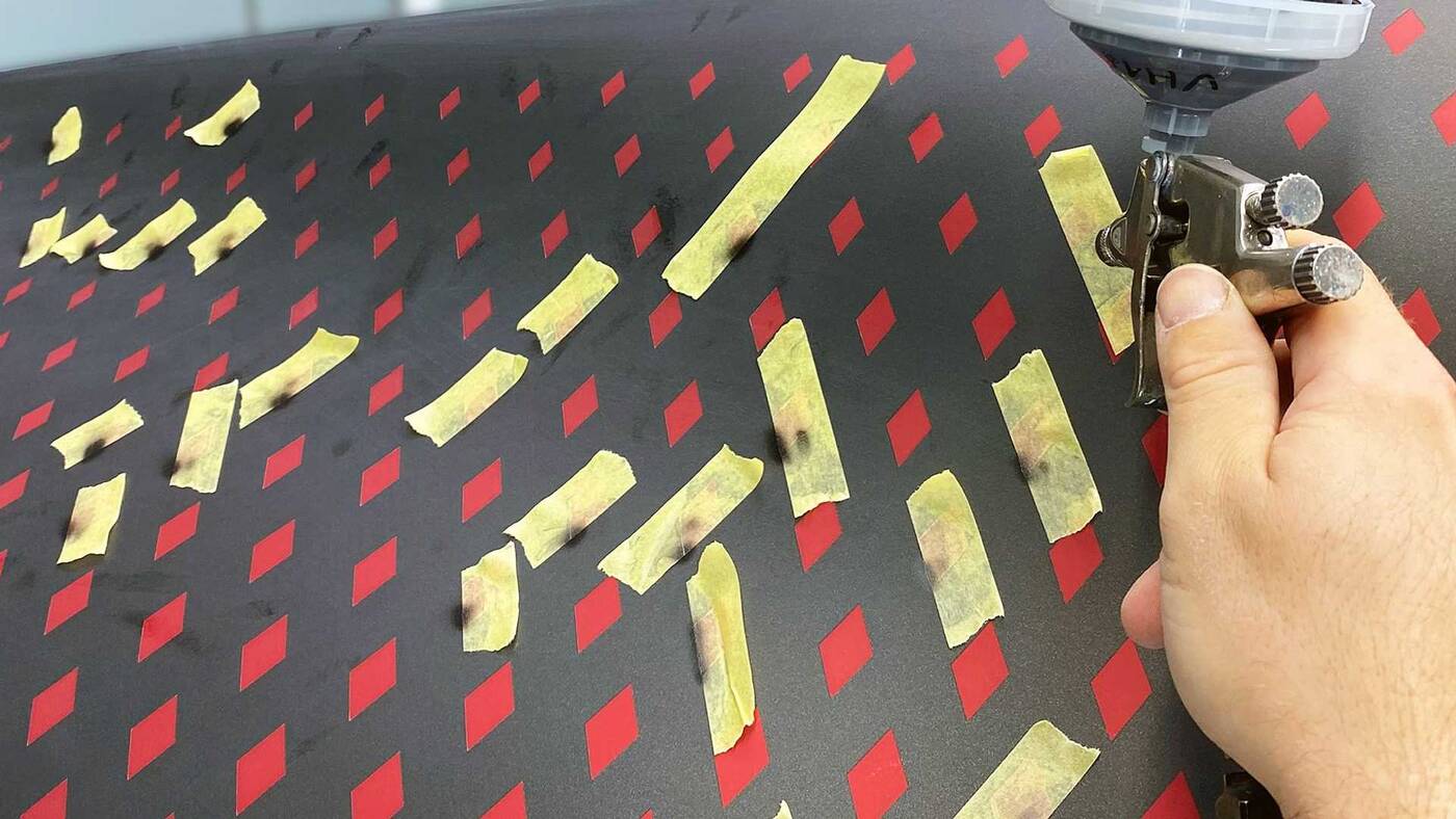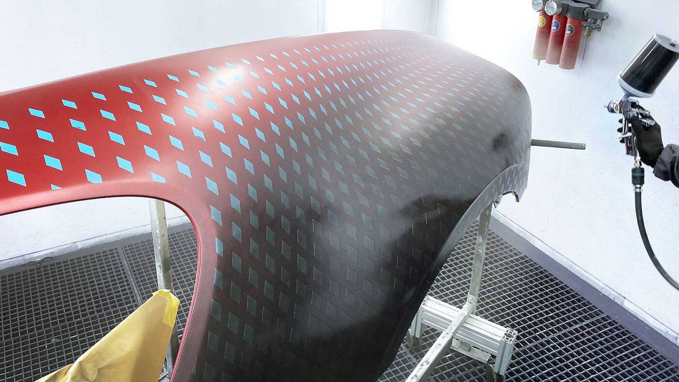Jak ten Divo powstał? Najpierw Bugatti pomalowało całe nadwozie na czerwono, a następnie nałożyło nie folię transferową i kształty diamentów, aby następnie wykończyć wszystko farbą Graphite. Ostatecznie każdy z diamentów został usunięty, odsłaniając ciekawy efekt. Firma kilkakrotnie testowała ten proces, zanim zrobiła to na samochodzie klienta.