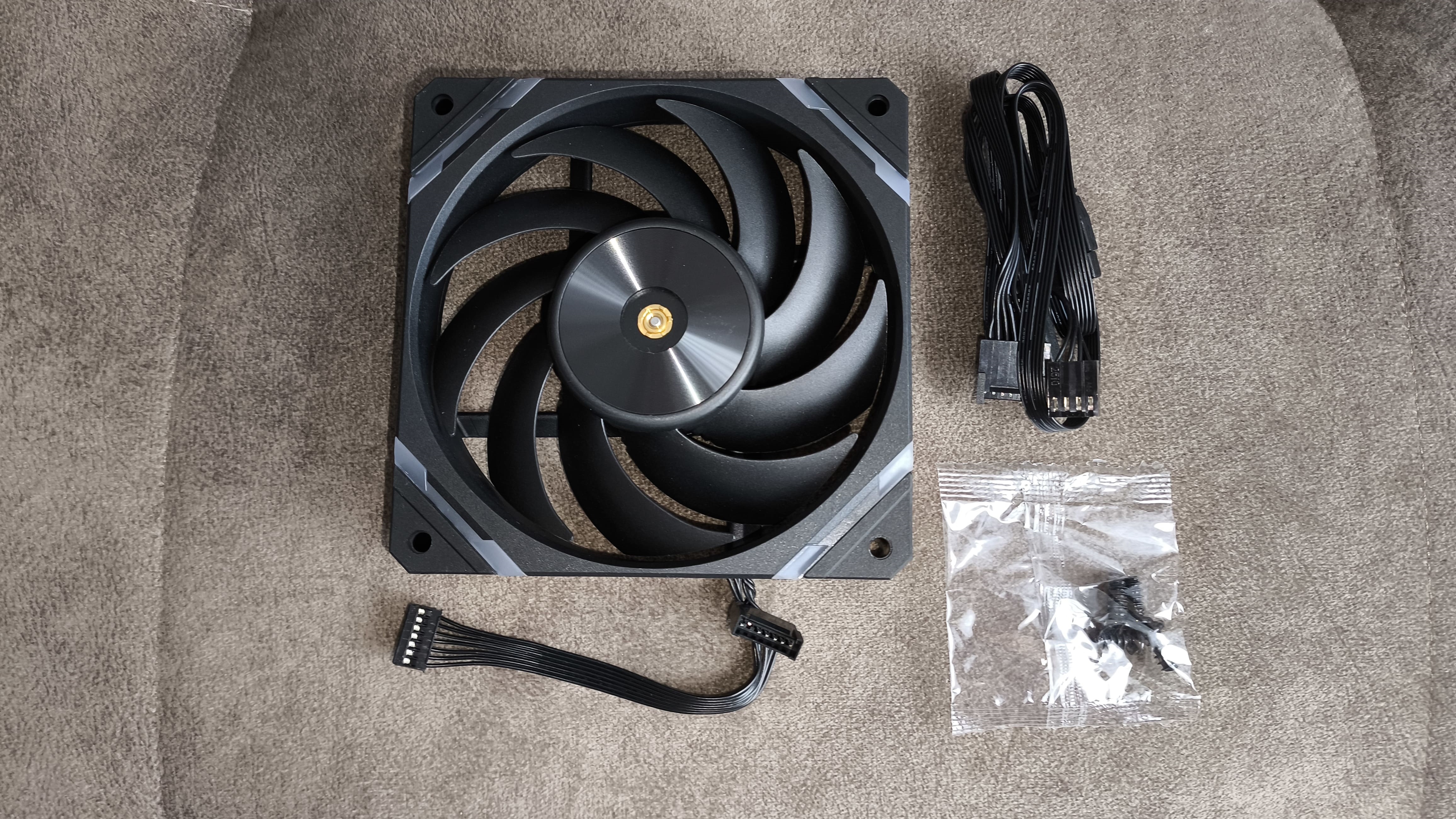 Każdy z wentylatorów wyposażono w niemal przezroczyste łopatki z wypukłymi paskami na powierzchni, co ma na celu poprawę przepływu powietrza. Duża średnica centralnej części obudowy wynika z obecności diod ARGB. Ramki wentylatorów wykonano z tworzyw PBT i PC.