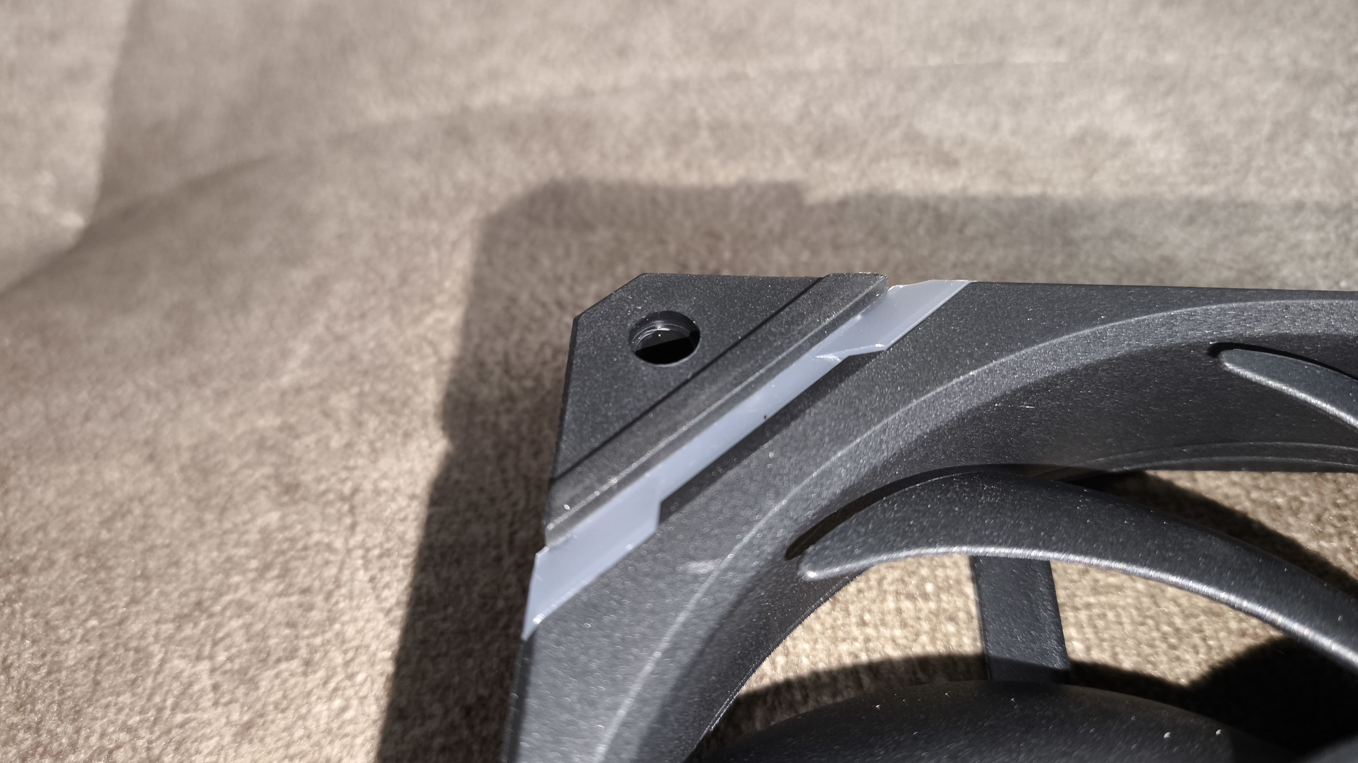 Elementem wizualnym, który wyróżnia te wentylatory, jest delikatne podświetlenie ARGB w narożnikach ramki. W przeciwieństwie do większości konstrukcji z pierścieniem LED wokół wirnika, tutaj postawiono na bardziej stonowany efekt świetlny, który nie dominuje wizualnie całej obudowy.
