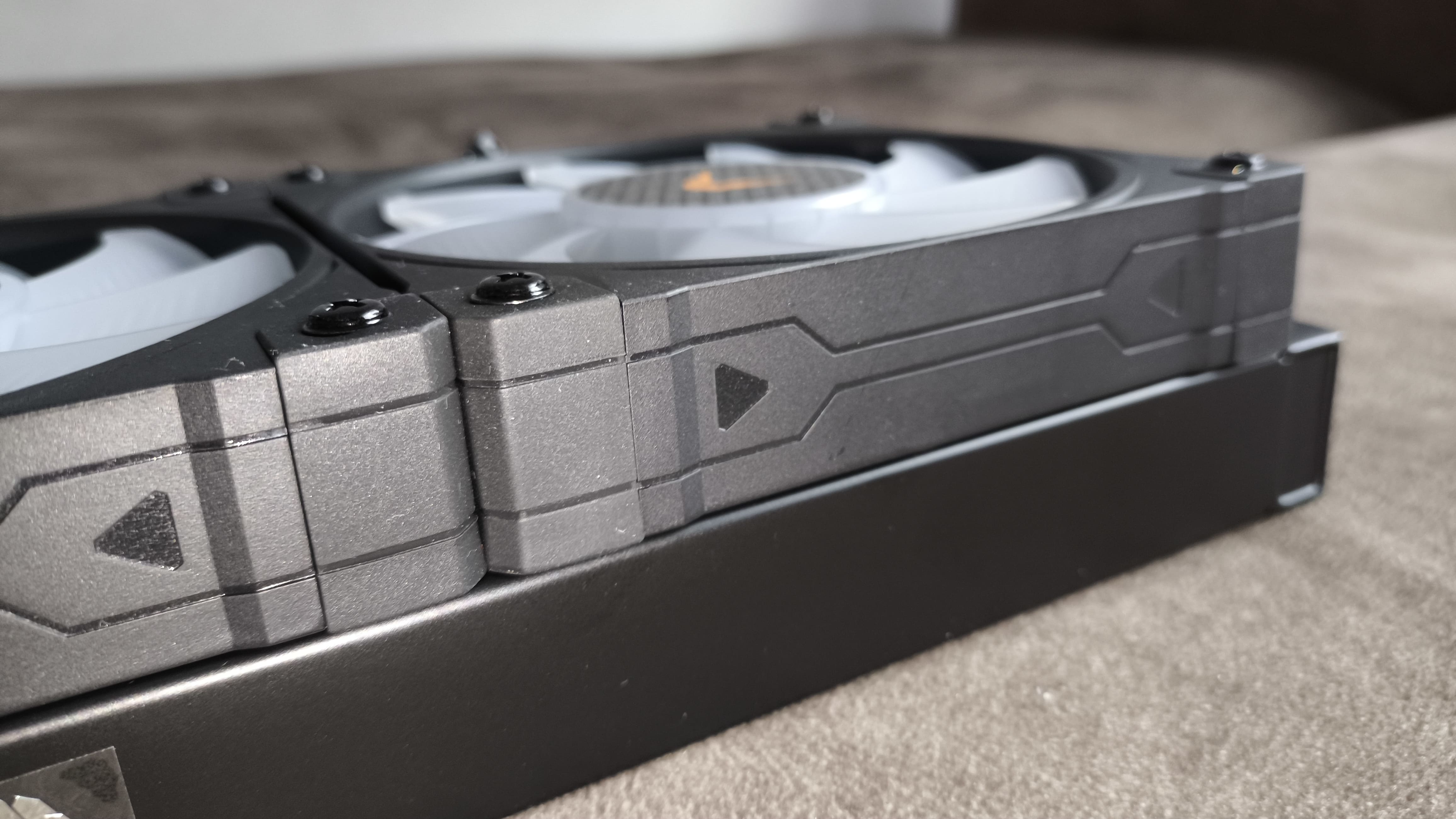 Wentylatory zamontowano na klasycznych otworach 120 mm, dzięki czemu łatwo można je zastąpić innymi jednostkami, jeśli użytkownik zdecyduje się na własną konfigurację. Ramki wyposażono także w gumowe podkładki antywibracyjne, które dodatkowo ograniczają przenoszenie drgań na chłodnicę i obudowę, co przekłada się na cichszą pracę zestawu.