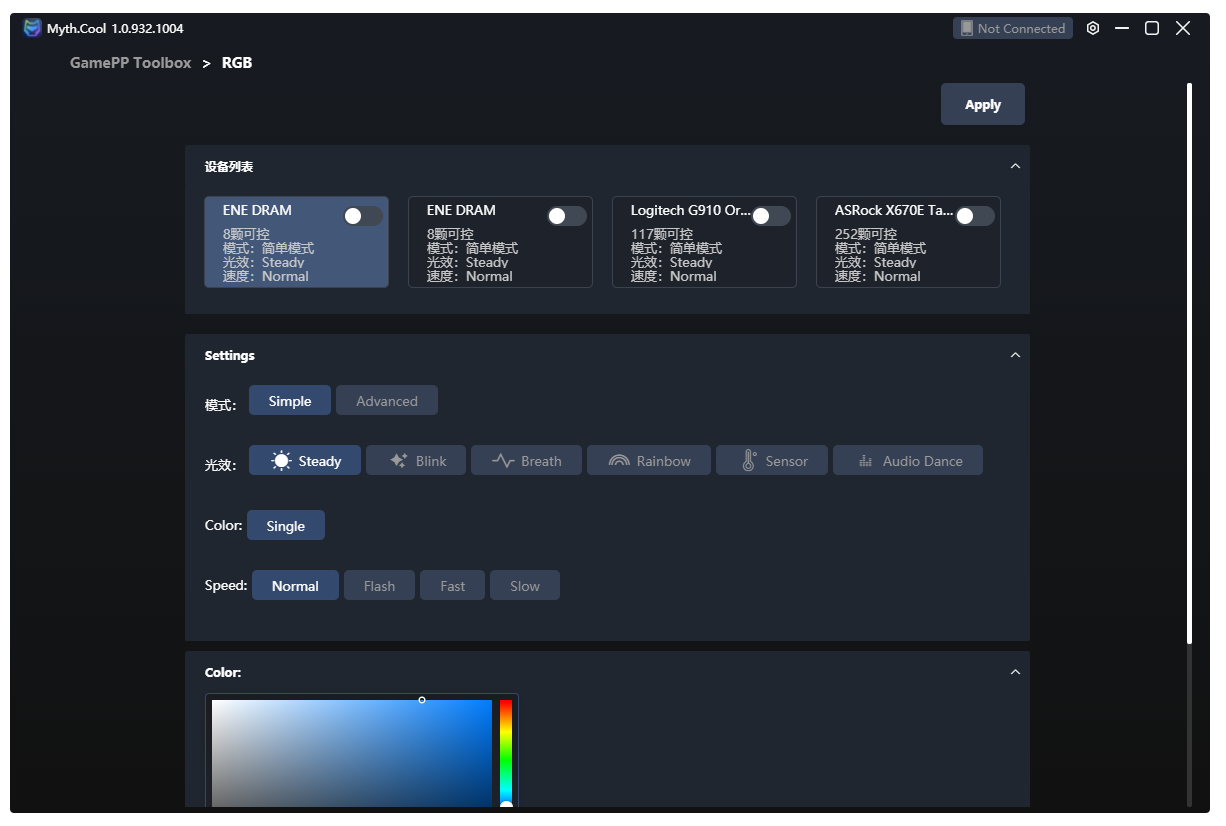 Valkyrie przygotowało dla swoich chłodzeń AIO własny ekosystem do zarządzania sprzętem chłodzącym i podświetleniem LED – aplikację Myth.cool. Program jest dostępny bezpłatnie na stronie producenta, a co ważne: nie ogranicza się tylko do jednego modelu AIO. Obsługuje pełne portfolio urządzeń Valkyrie oraz wybrane produkty kompatybilne.