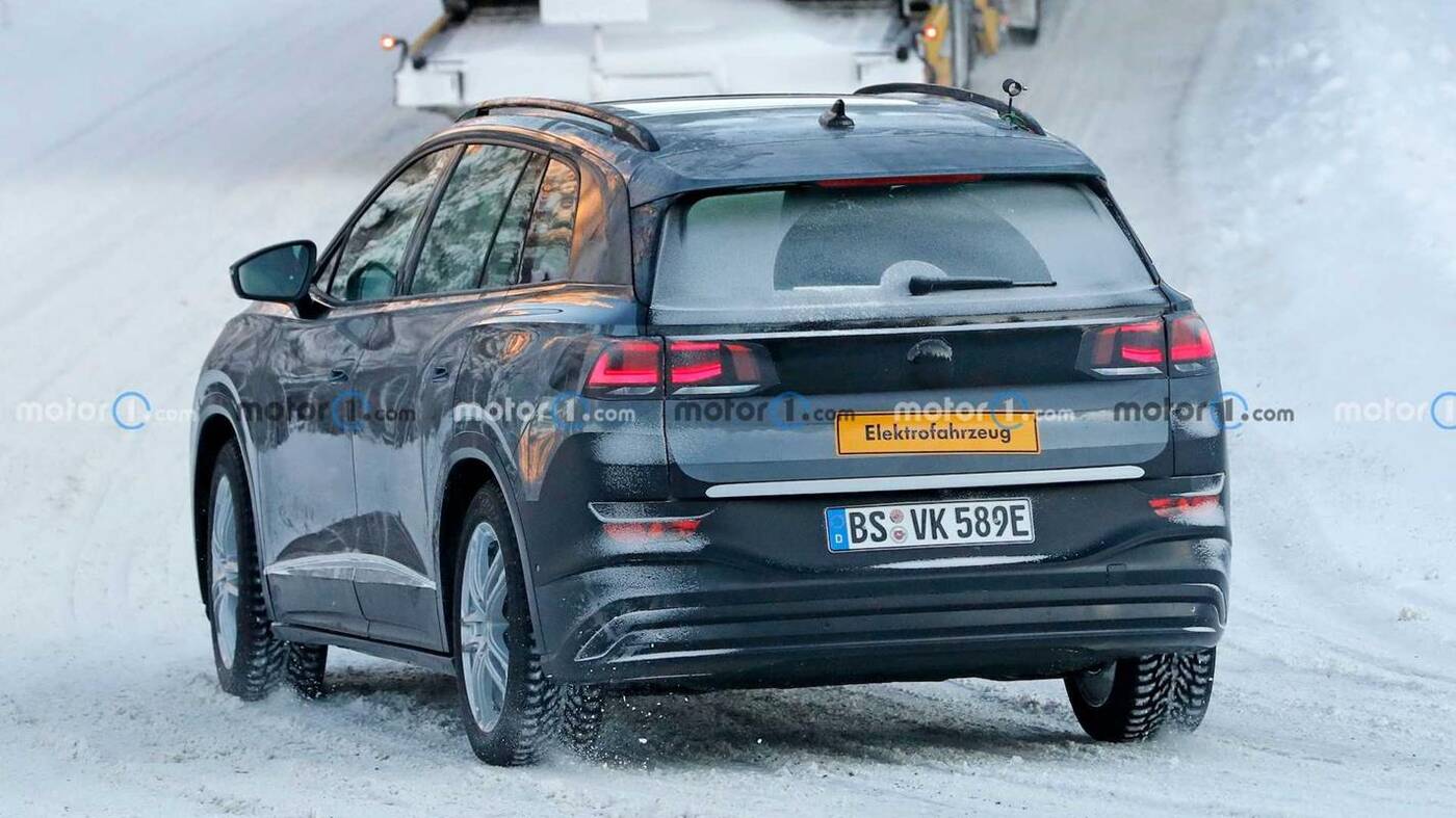 Szpiegowany podczas testów w niskich temperaturach, ID.6 nadal dzierży na przodzie elementy Peugeota, które w rzeczywistości są naklejkami (przyjrzyjcie się grillowi oraz zderzakowi). Z kolei na tyle ten prototyp ID.6, którego elektryczne zapędy zdradzają plakietki „Elektrofahrzeug”, ma inny zestaw fałszywych tylnych świateł.