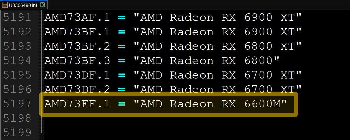 Właśnie w sterownikach zauważono AMD Radeon RX 6600M. AMD włączyło też do drivera identyfikatory Navi 24, co pokazuje, że niedługo może odbyć się premiera całej rodziny grafik.