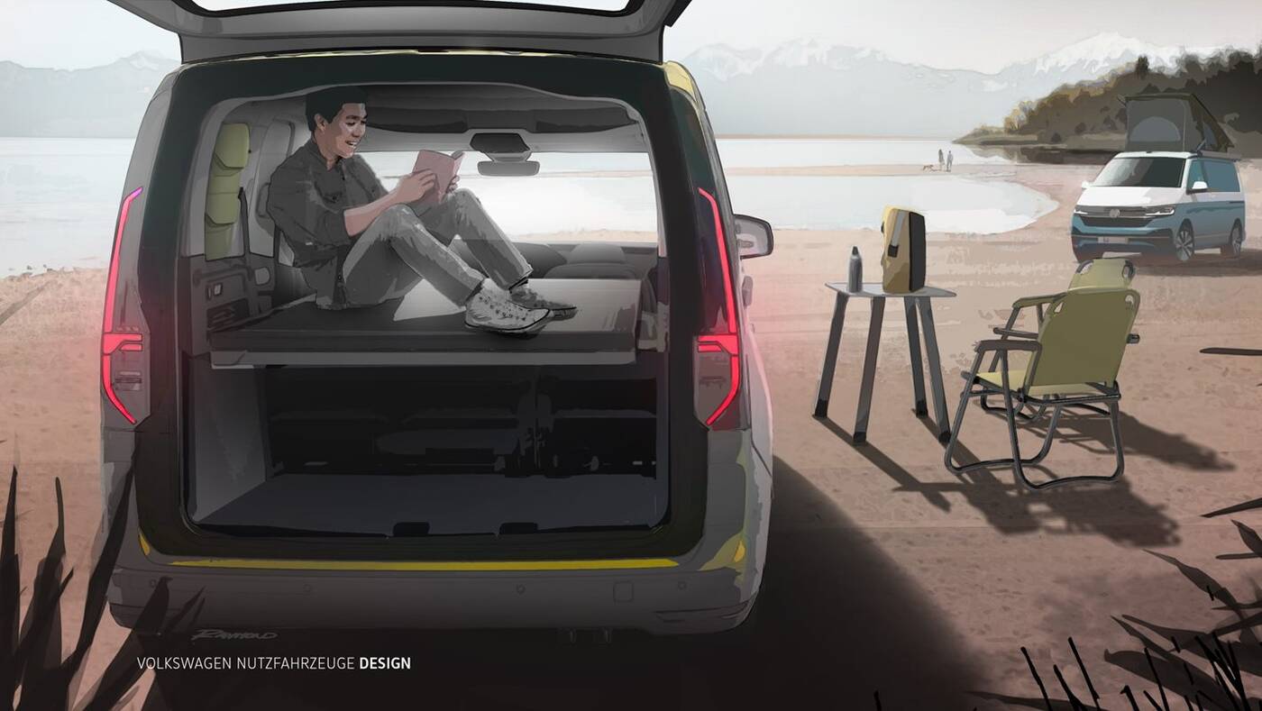 Jednak Volkswagen dokonał poważnego remontu samej kabiny Caddy. Standardowa tylna przestrzeń ładunkowa została zmieniona na dwumetrowe składane łóżko. Szyby wokół niego wyposażono dodatkowo w rolety. Co jednak ważne, to łóżko można całkowicie zdemontować, aby zmienić nowego Caddy w typowego vana.