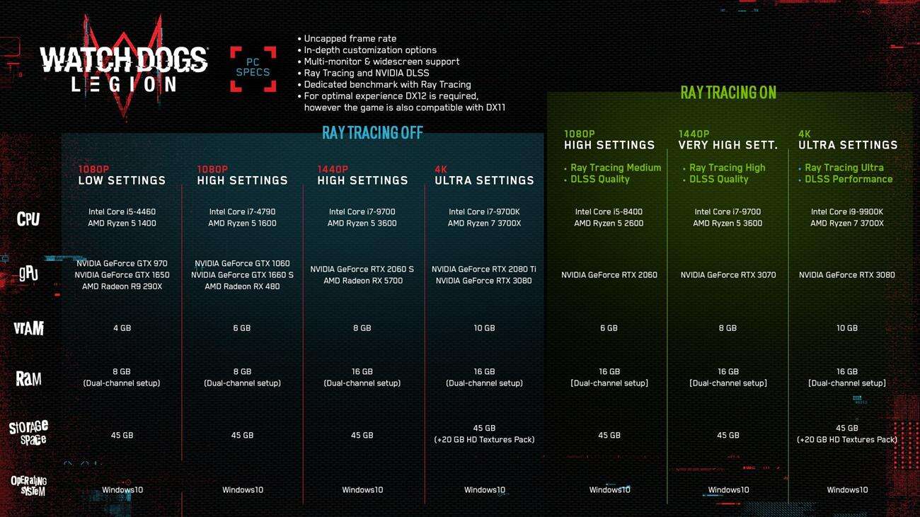 Jak sami widzicie, dla niektórych ustawień wymagany jest nawet RTX 3080 przy 4K z ray tracingiem i DLSS. Do 1080p i niskich usatwień potrzebujecie GTX 970/ GTX 1650/ R9 290X. Ilość pamięci RAM zaczyna się od 8 GB i kończy na 16 GB. Tutaj nie ma zaskoczenia. Najsłabszy procesor to Intel Core i5-4460 lub AMD Ryzen 5 1400 290X, natomiast przy największych ustawieniach bez i9-9900K lub Ryzena 7 3700X się nie obejdzie. Gra zapowiada się więc na bardzo wymagającą w szczególności, jeśli chcecie odpalić ray tracing czy grać w wyższych rozdzielczościach.