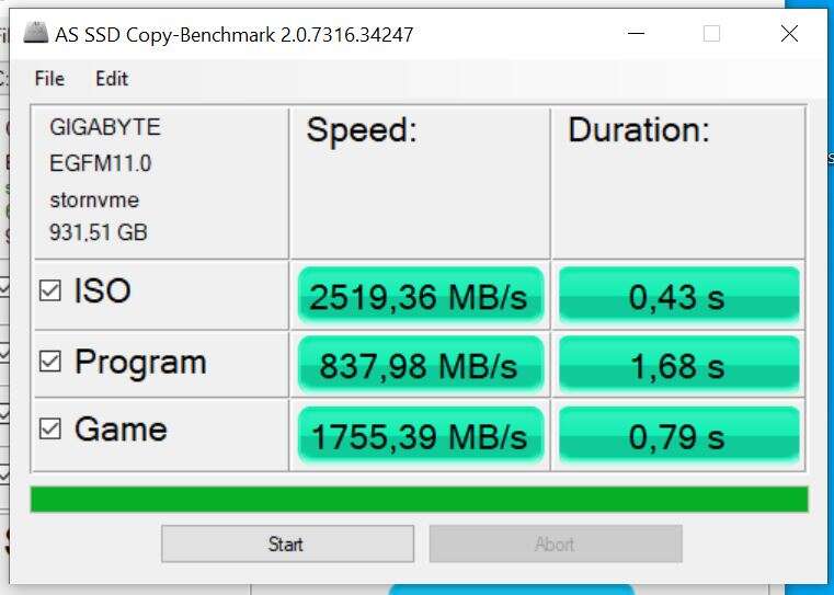Czas i prędkość kopiowania pliku 9,31 GB z WD My Passport Go 500 GB na dysk Aorus NVMe : 3 s, 3103 MB/s