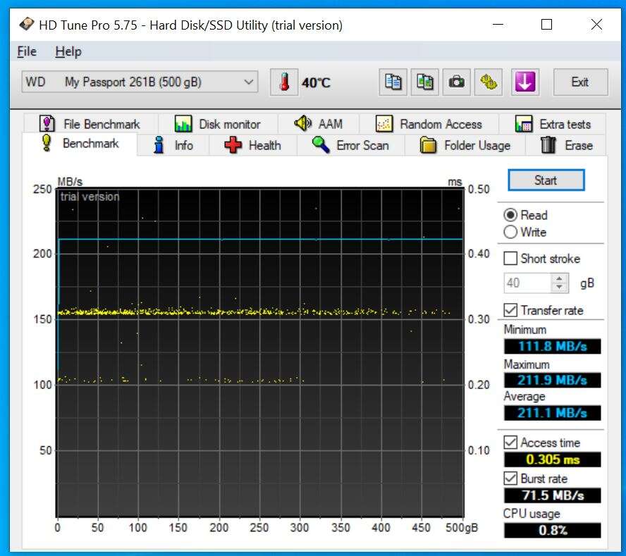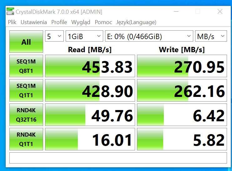 Dysk prezentuje dobre wyniki odczytu – tutaj uzyskane prędkości pozwolą na szybkie kopiowanie danych. Jednakże prędkości zapisu zawodzą. Przy mniejszych plikach czy w benchmarkach zapis wypada nieźle, ale po chwili kopiowania prędkość spada z ponad 200 MB/s do ok. 100 MB/s. Niestety jest to trochę słaby wynik i zdecydowanie liczyłem na więcej.