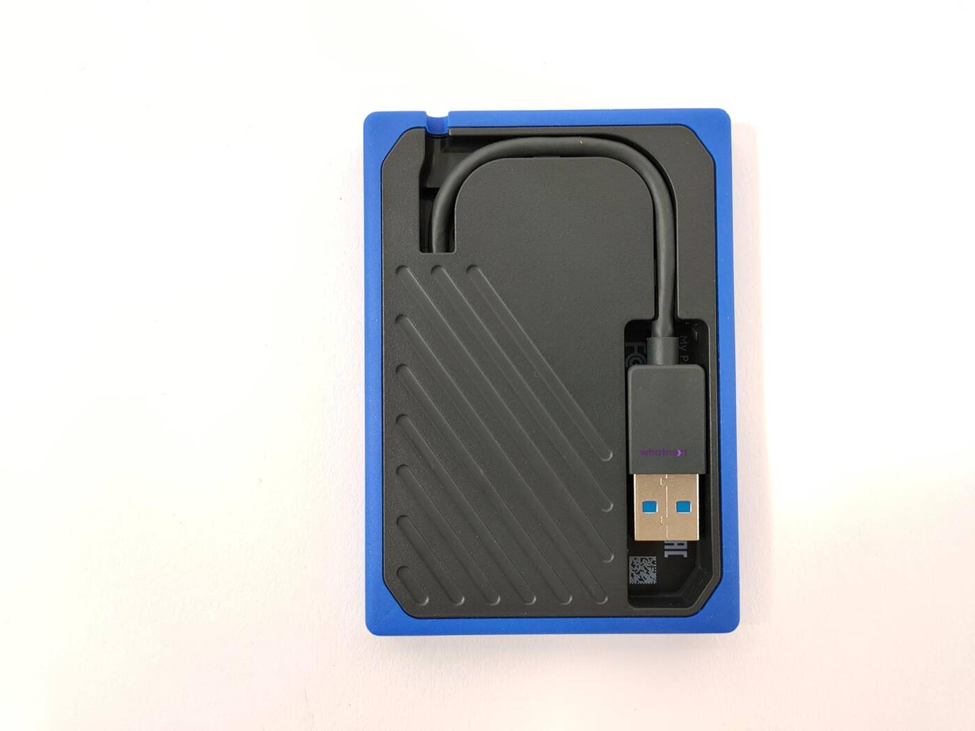 Dysk jest bardzo mały i lekki. Jego wymiary wynoszą 10 mm x 67 mm x 95 mm i waży on 55 g. Dzięki temu jego przenoszenie nawet w najmniejszych kieszeniach nie będzie uciążliwe. Sam dysk wygląda dobrze, ale co ważniejsze jest świetnie wykonany. Niebieska część jest gumowa, dzięki czemu WD My Passport Go 500 GB wytrzyma upadki nawet z 2 metrów. Jest on także odporny na uderzenia czy wstrząsy. Ważna jest jeszcze jedna rzecz – kabel USB 3.0 jest wbudowany w dysk. Dzięki temu nie musicie o nim pamiętać. Co prawda jest on dosyć krótki, ale dzięki małej wadze dysku nie ma to znaczenia.