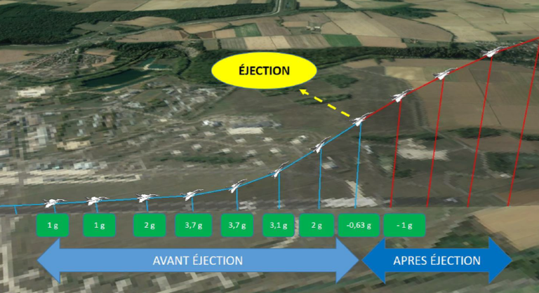 Ta jednak się wydarzyła, bo pilot po manewrze ostrego wznoszenia się i wygenerowania sił rzędu 3,7 g, zagwarantował pasażerowi solidne wgniecenie do siedzenia, co chwilę po tym przeszło w stan istnej nieważkości po wyrównaniu myśliwca i sprowadzeniu sił do 0,67 g. Wtedy brak solidnego przypięcia do siedzenia sprawił, że niedoszły emeryt miał wrażenie, że zaraz wyleci z kokpitu. Zrobił to chwilę później.