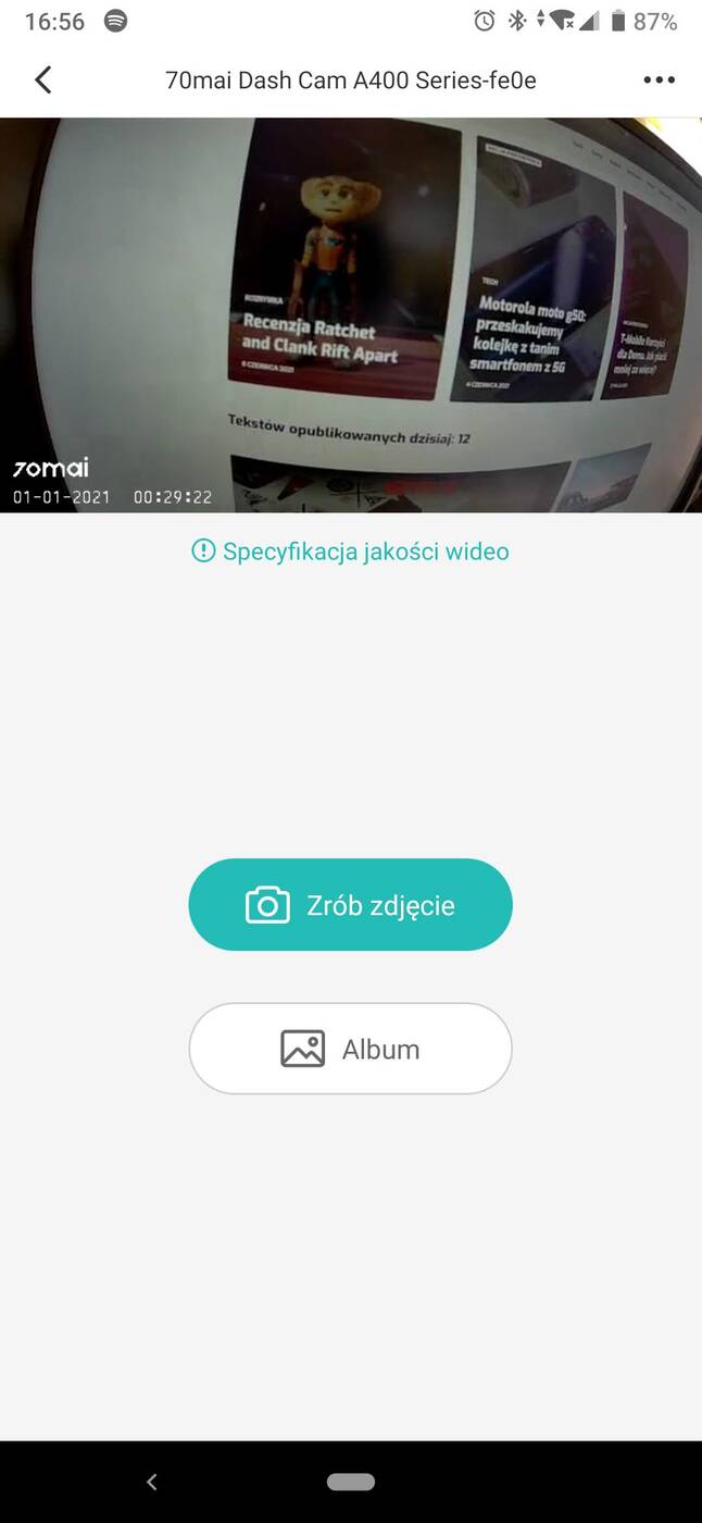 Zanim jednak ruszycie uśmiechnięci do samochodu z planem montażu Xiaomi 70mai A400+Rear Cam Set, sugeruję podpiąć go do ładowania i w tym czasie zapoznać się z dostępną na smartfony aplikacją i połączyć wideorejestrator po generowanym przez niego WiFi. Ta pozwala nam ustawić najważniejsze opcje i zapewnia możliwość zarówno podglądu z obu kamerek, jak i przeglądania uzyskanych materiałów na większym ekranie. Oczywiście Xiaomi postarało się też o proste, więc i przejrzyste wewnętrzne menu z kulejącym językiem polskim, aby uniezależnić nas od smartfonu.
