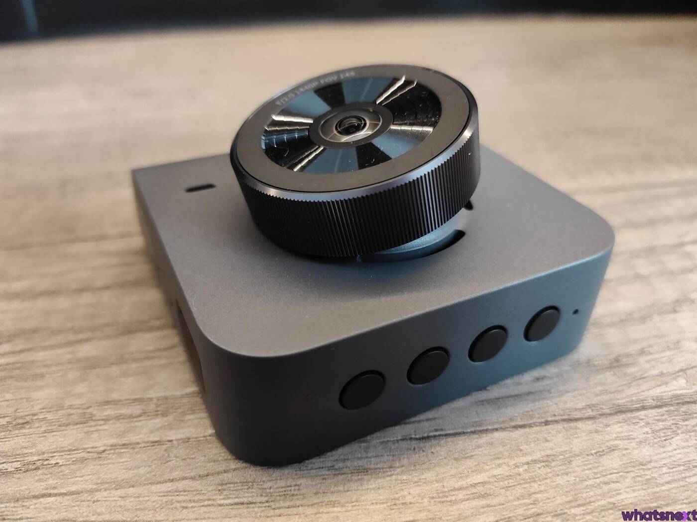 Na przodzie znalazł się nasz główny bohater, czyli odchylany w każdym kierunku obiektyw o przysłonie f/2.0 o polu widzenia 145 stopni w towarzystwie głośnego głośnika zaprzęgniętego do „asystentki” i napisu 70mai. Na drugiej stronie znajdziemy z kolei duże otwory wentylacyjne i 2-calowy wyświetlacz dobrej jakości, który sprawdza się źle wyłącznie przy ostrym słońcu.