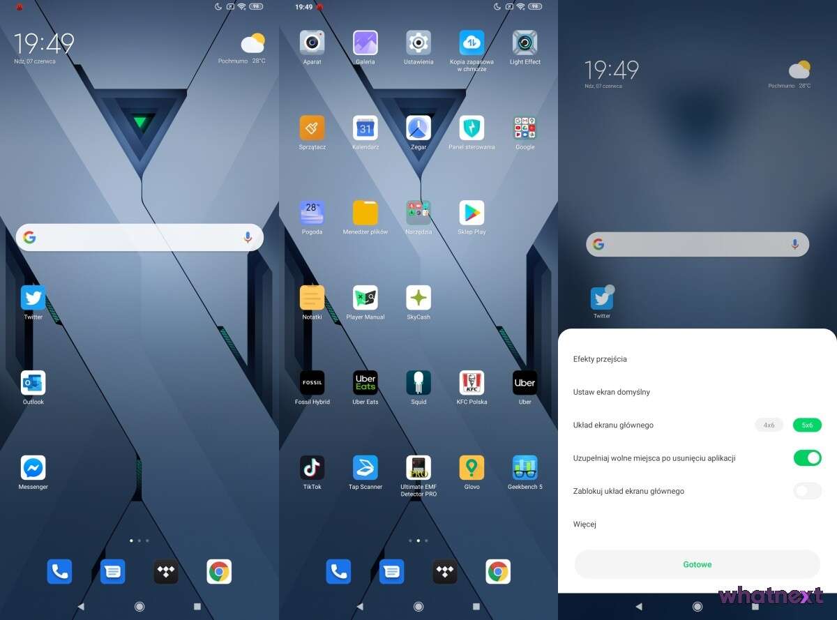 Bez zmian pozostały tylko trzy motywy do wyboru, co mocno ogranicza opcje personalizacji interfejsu. Plus należy się za możliwość zmiany rozmiaru ikon raz poszerzenie ich siatki. Dostępna jest również znana ze smartfonów Xiaomi tzw. Druga przestrzeń, która pozwala na korzystanie równolegle z dwóch kont w różnych aplikacjach, jak np. Messenger.